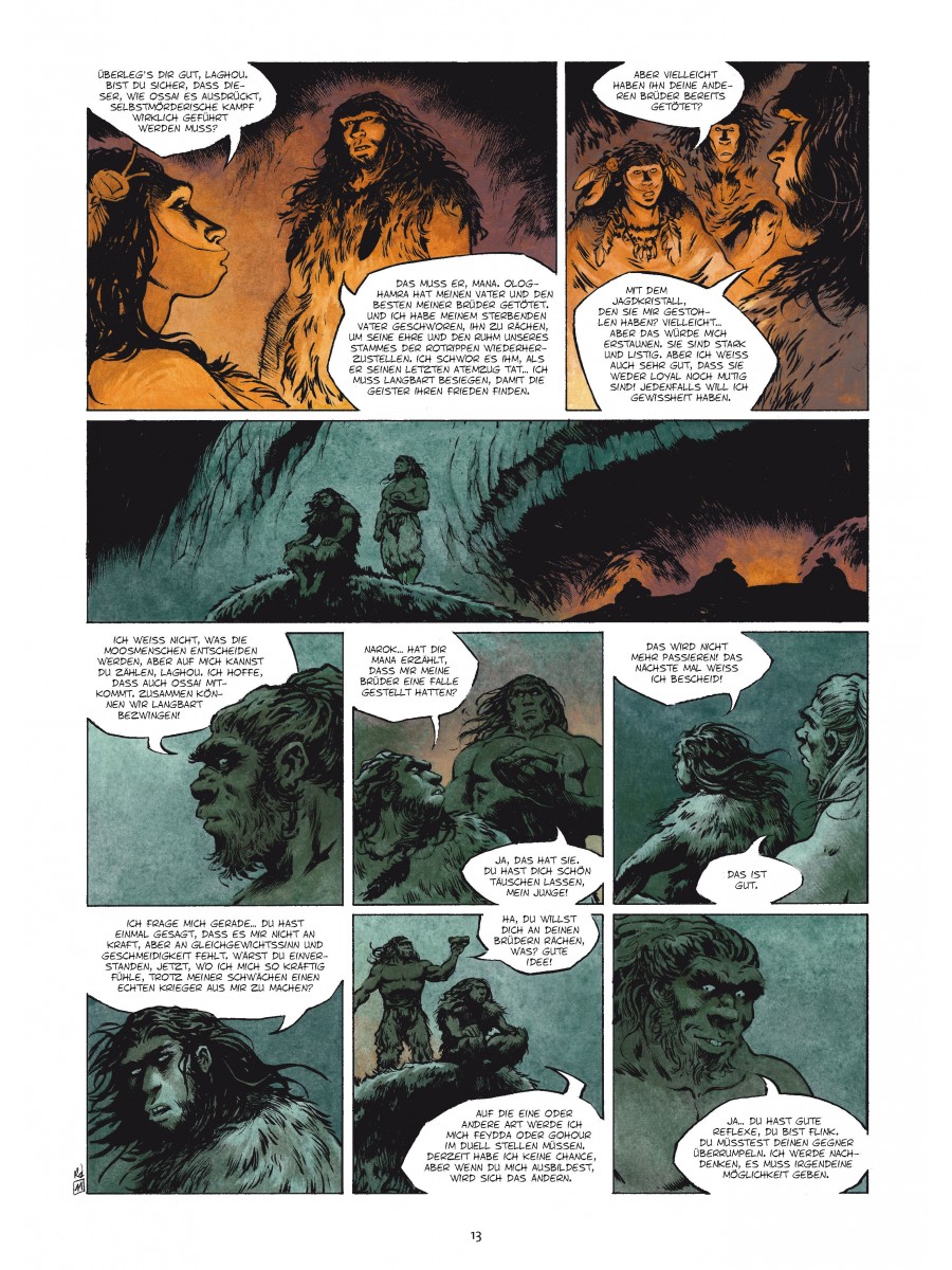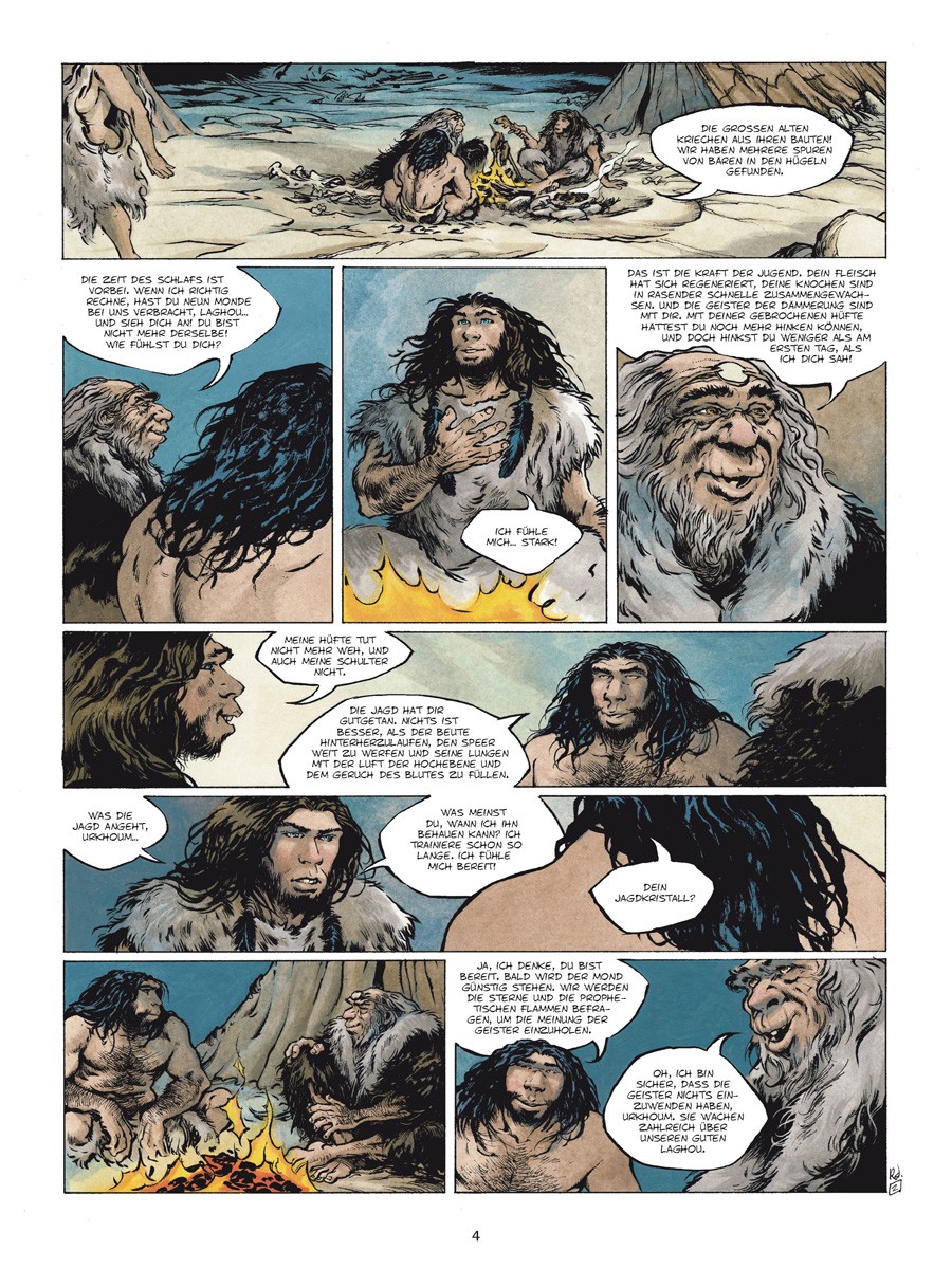 Voller Wut schwört der behinderte Laghou, den Tod seines älteren Bruders Kozamh zu rächen und eigenhändig Langbart zu erlegen. Doch wie soll er das anstellen? Dem Rat des alten Ghoibu folgend, macht er sich auf die Suche nach einer magischen Waffe: dem Jagdkristall, der im Besitz des weiter entfernt lebenden Clans des Mondes ist. Doch den Jagdkristall soll er nur im Austausch gegen den Lebenstrank erhalten. Mit Hilfe der schönen Mana erledigt er seine Aufgabe und hält endlich die lang ersehnte Waffe in Händen. Doch als Laghou stolz zu seinem Stamm zurückkehrt, erwartet ihn eine böse Überraschung…