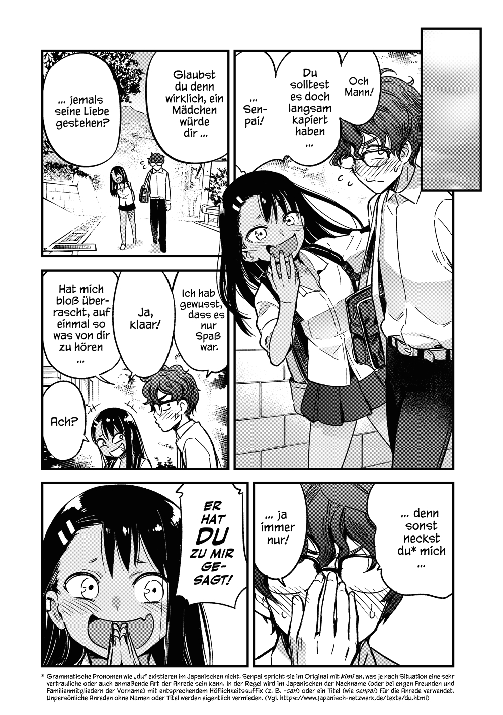 Nagatoro ist gerade im ersten Jahr der Oberschule, als sie eines Nachmittags einem schüchternen Schüler aus der Jahrgangsstufe über ihr begegnet. "Senpai" liebt Zeichnen und sieht sich gern als Held seiner eigenen Manga. Ein gefundenes Fressen für Nagatoro und ihre Clique. Während sich die Mädchen zunächst hemmungslos über Senpai lustig machen und er denkt, dass es nur das übliche Mobbing von Leuten sei, mit denen er sowieso nie mehr etwas zu tun haben wird, taucht Nagatoro tags darauf plötzlich bei ihm im Clubraum auf. Doch was steckt dahinter? Was will sie von ihm? Und warum scheint es irgendwie so, als wäre er der Einzige, den sie gerne nervt, und als würde es sie extrem stören, wenn noch jemand anders ihren Senpai ärgert?