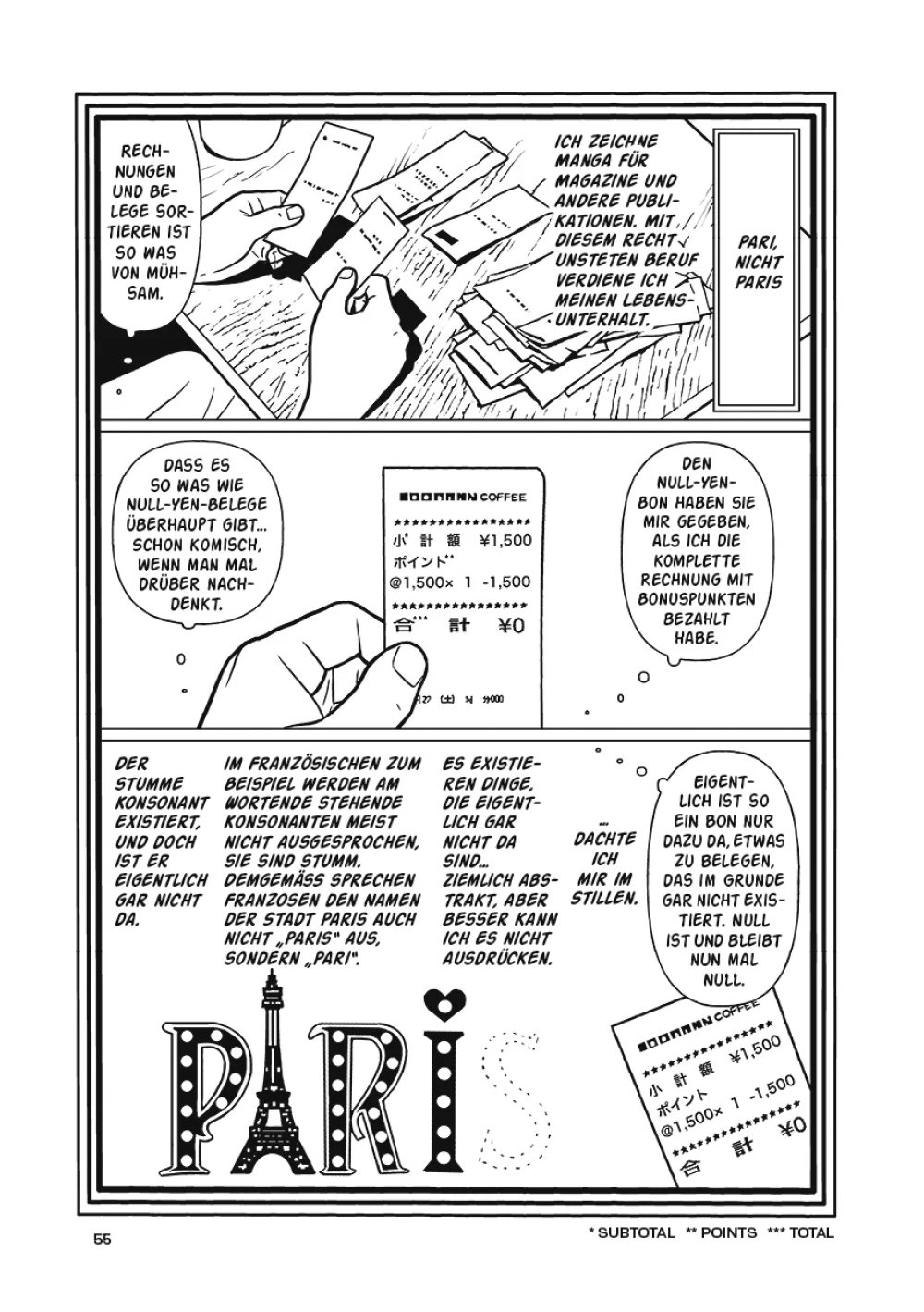 Mittlerweile jedoch hat er sein 50. Lebensjahr überschritten und kümmert sich unter anderem um die Erziehung seines Kindes. Auf Spaziergängen durch die Hafenstadt Yokohama, während derer er sich Gedankenspielen hingibt, sich den einfachen Fragen des Lebens widmet, aber auch philosophische Themen erörtert. Humorvoll reflektiert Minetaro Mochizuki, was das Zeichnen für ihn bedeutet, und lässt uns mit ihm die Geheimnisse der kreativen Arbeit ausloten.