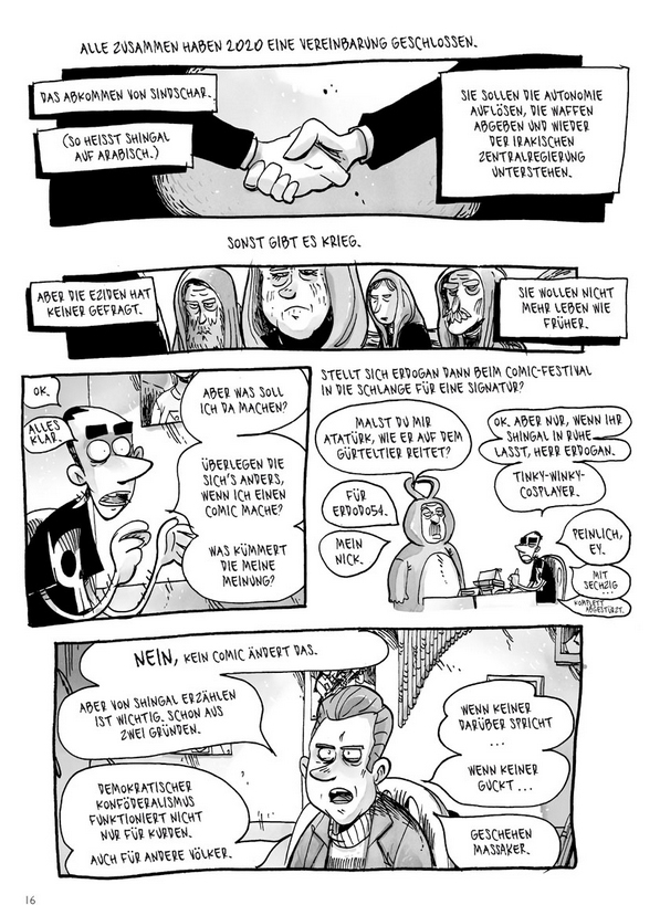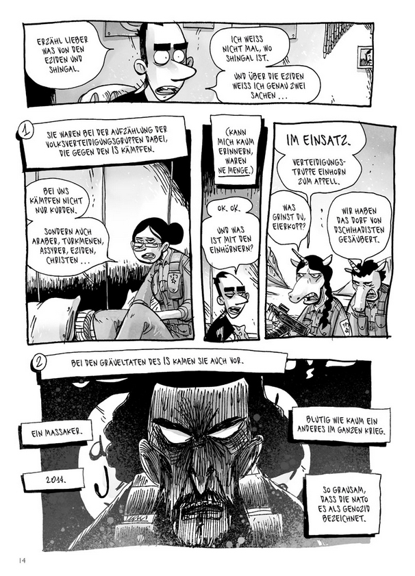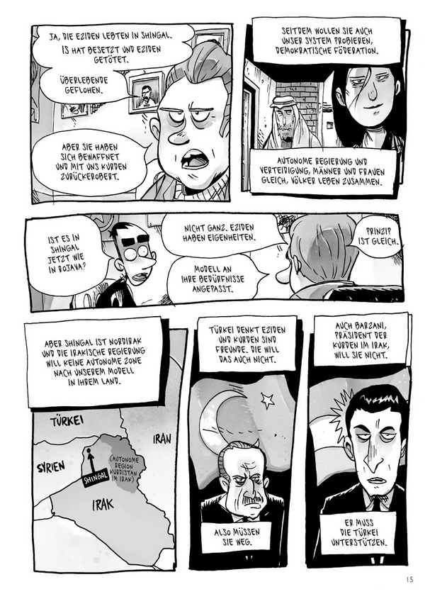 Der Comic ist die präzise Momentaufnahme eines geopolitischen Augenblicks, in dem sich eine Handvoll Menschen der überwältigenden Macht derer widersetzt, die jeden Versuch des Widerstands pauschal als „Terrorismus“ diffamieren. Während sich die Machtstrukturen vor Ort langsam verändern und der Traum von einem demokratischen Föderalismus in einem vergessenen Stück Mesopotamiens am Leben erhalten wird. In einer Region, die aus der Wahrnehmung des Westens zunehmend verschwunden ist.