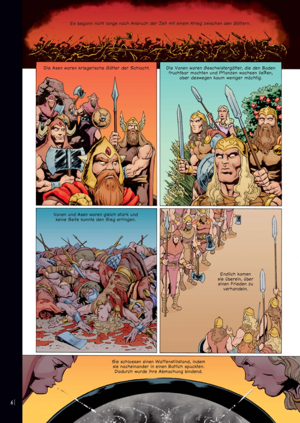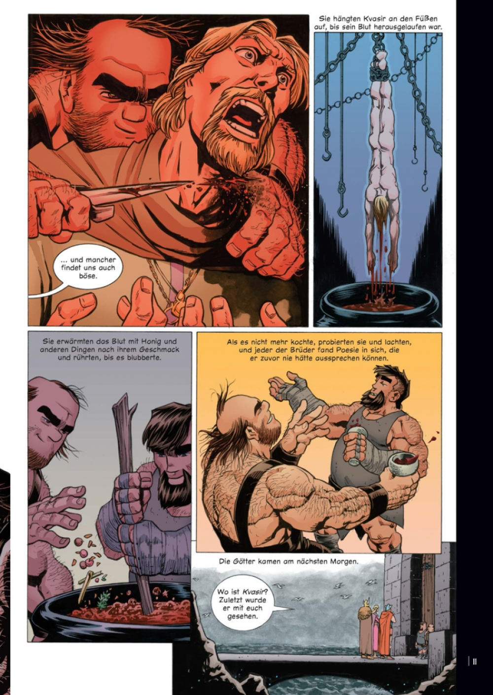 Wer könnte besser von den Göttern, ihren Schicksalen, Scherzen und Intrigen erzählen als Neil Gaiman, der Schöpfer von »Sandman« und »American Gods«? Und wer könnte sie besser in Bilder fassen als eine Riege außerordentlicher Zeichner wie Matt Horak, Mark Buckingham, Gabriel Hernández Walta und Sandy Jarrell? Ein Kleinod im Comicregal, nicht nur für Jarls und Skalden!