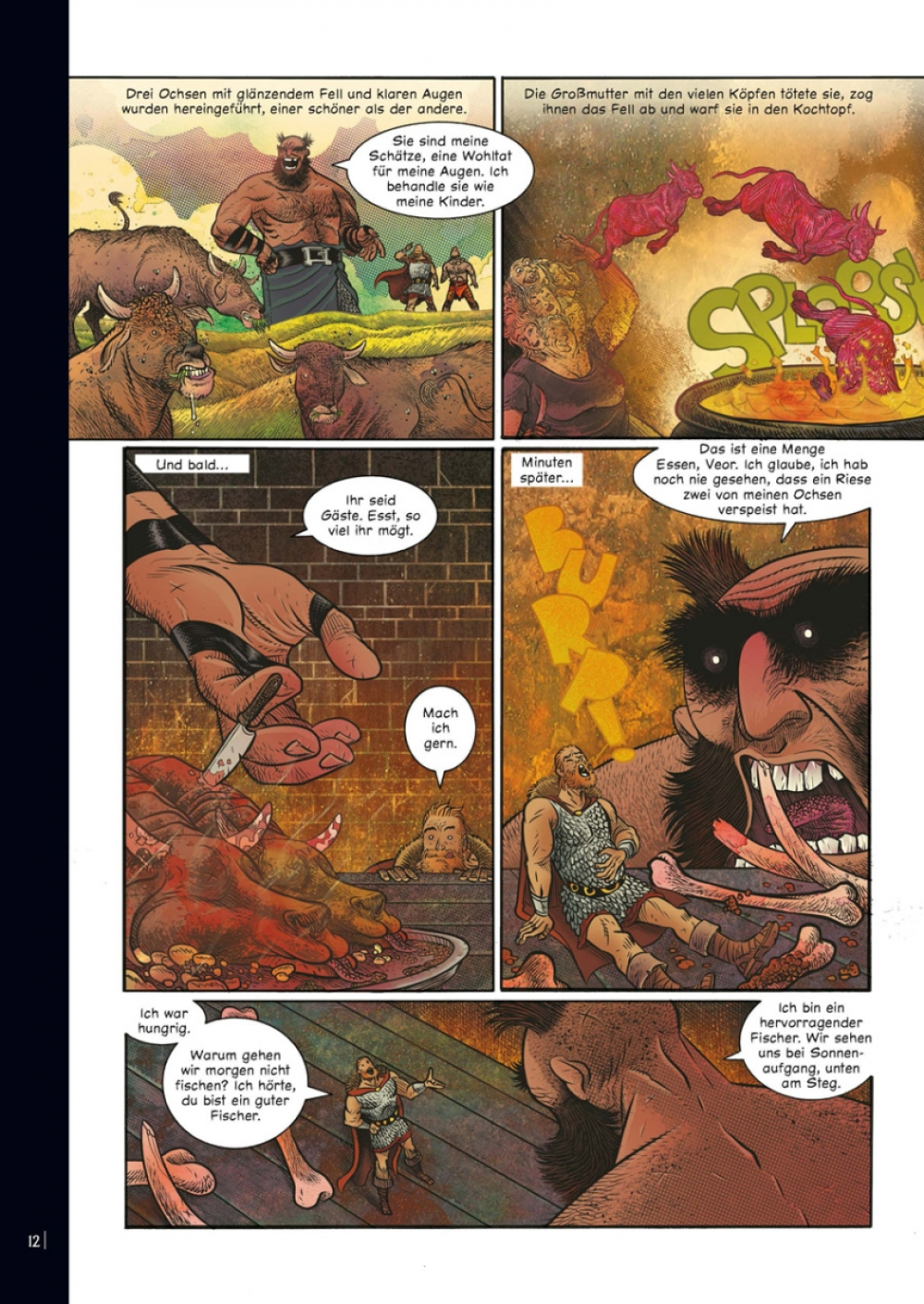 Vom Konflikt der Götter Thor und Tyr mit einer vielköpfigen Riesin, von feuerspuckenden Seeschlangen und noch seltsamerem Getier, von der langen Reise Odins ans Ende der Welt bis zum ultimativen Schicksal der Götter: Ragnarök – auch der finale Band dieser von Meisterhand illustrierten Geschichtensammlung bietet eine verblüffende Reise quer durch die nordische Mythologie.