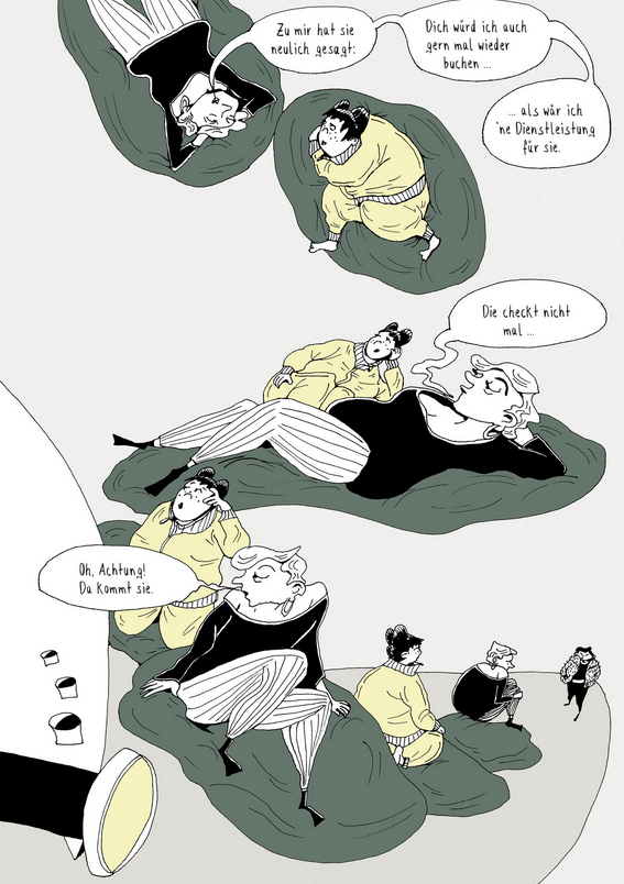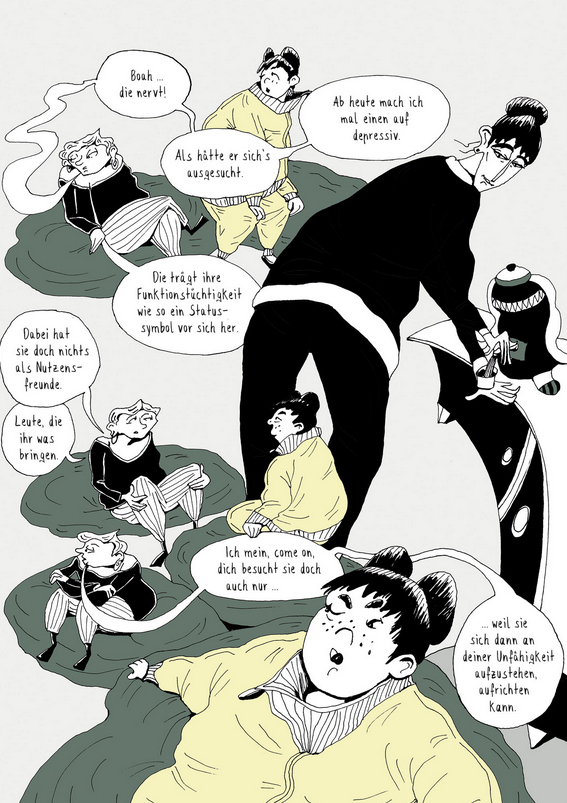 Ausgehend vom Original, dem legendären OBLOMOW von Gontscharow, einem russischen Kleinadligen aus dem Jahre 1859, zieht sich der Comic vor allem die Big Lebowskische Liegesituation in die Gegenwart. Das ist spannend! Denn die Vergangenheit als Orientierungsanker im Backflash erlaubt einen unverstellten Blick auf die Gegenwart:
