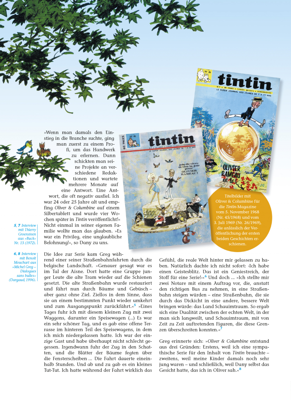 Die erste Geschichte von Olivier Rameau (dt. Oliver & Columbine) wurde ab 1968 in der Comic-Zeitschrift Tintin veröffentlicht.