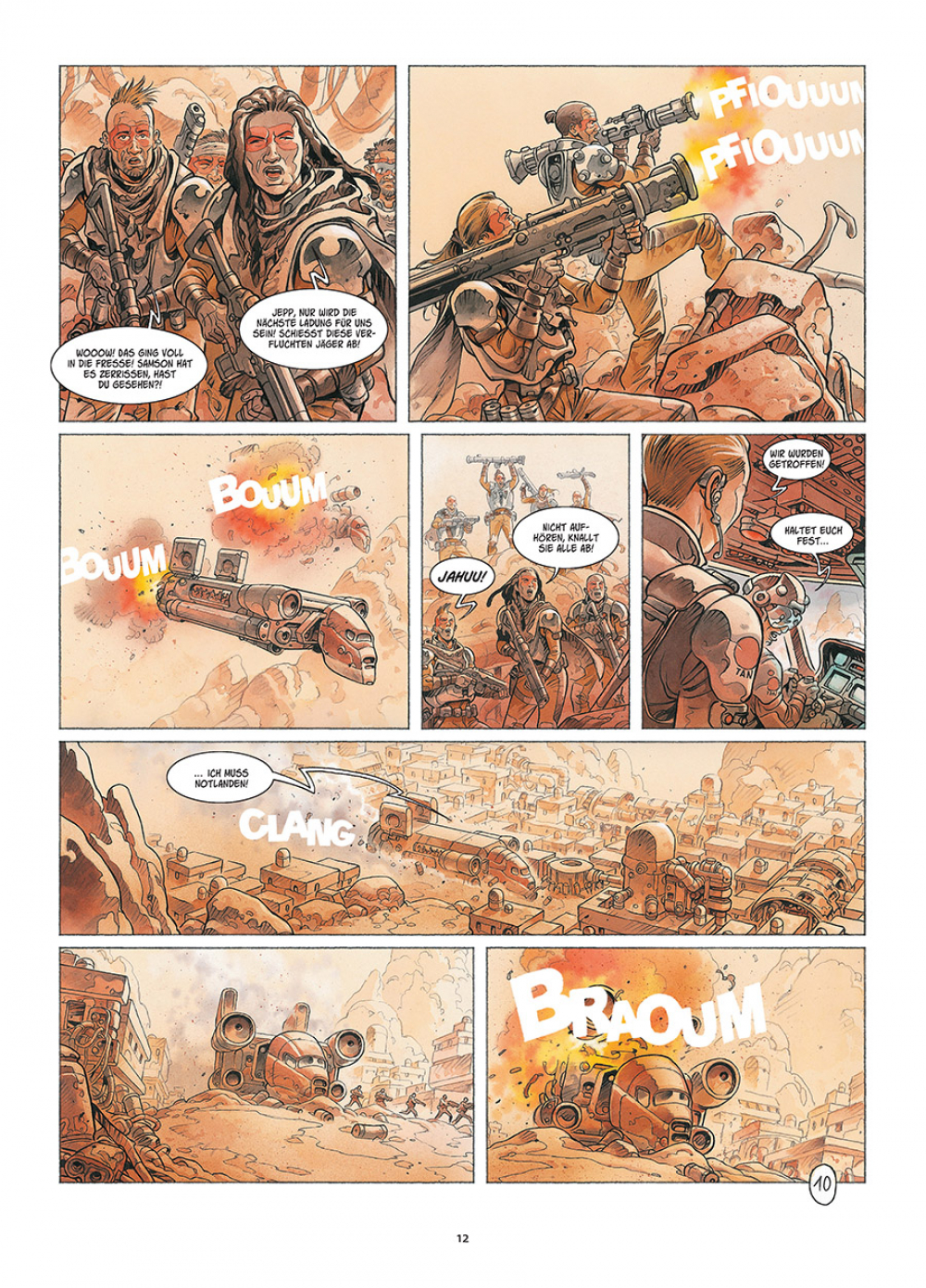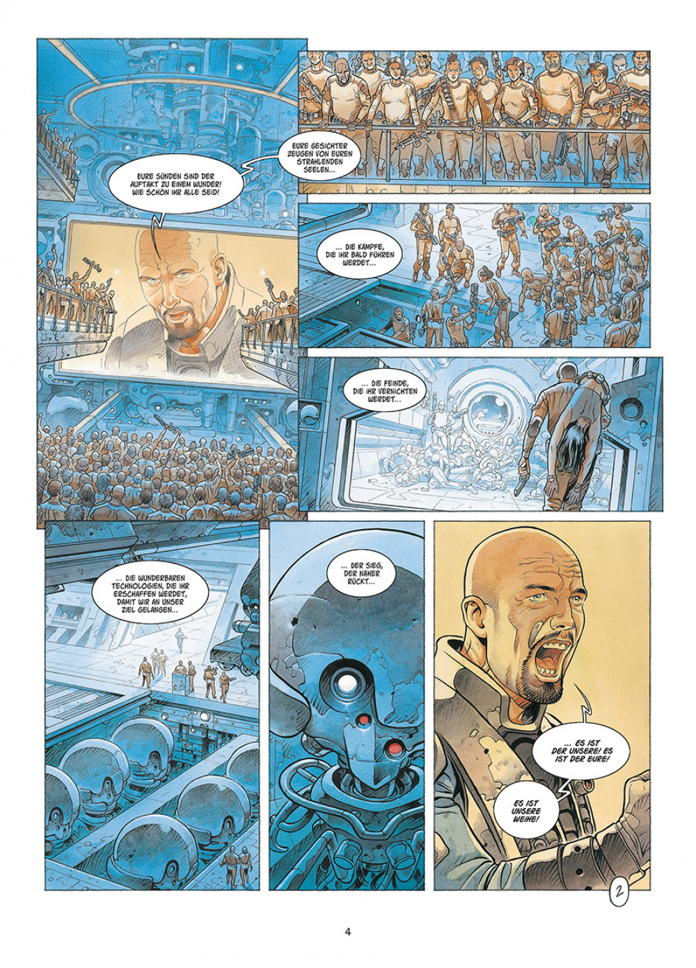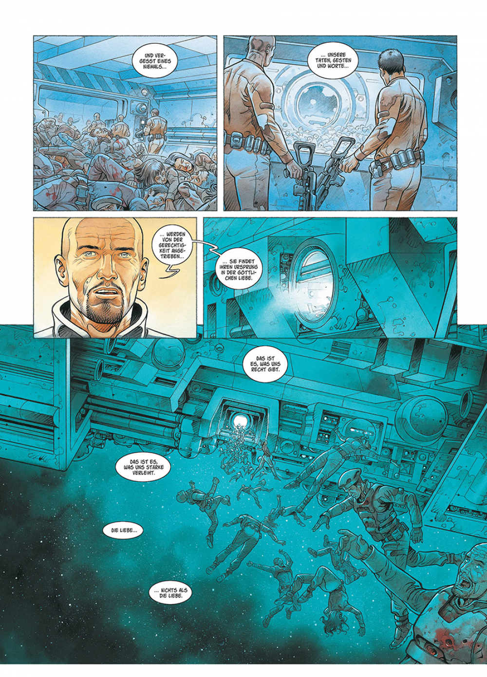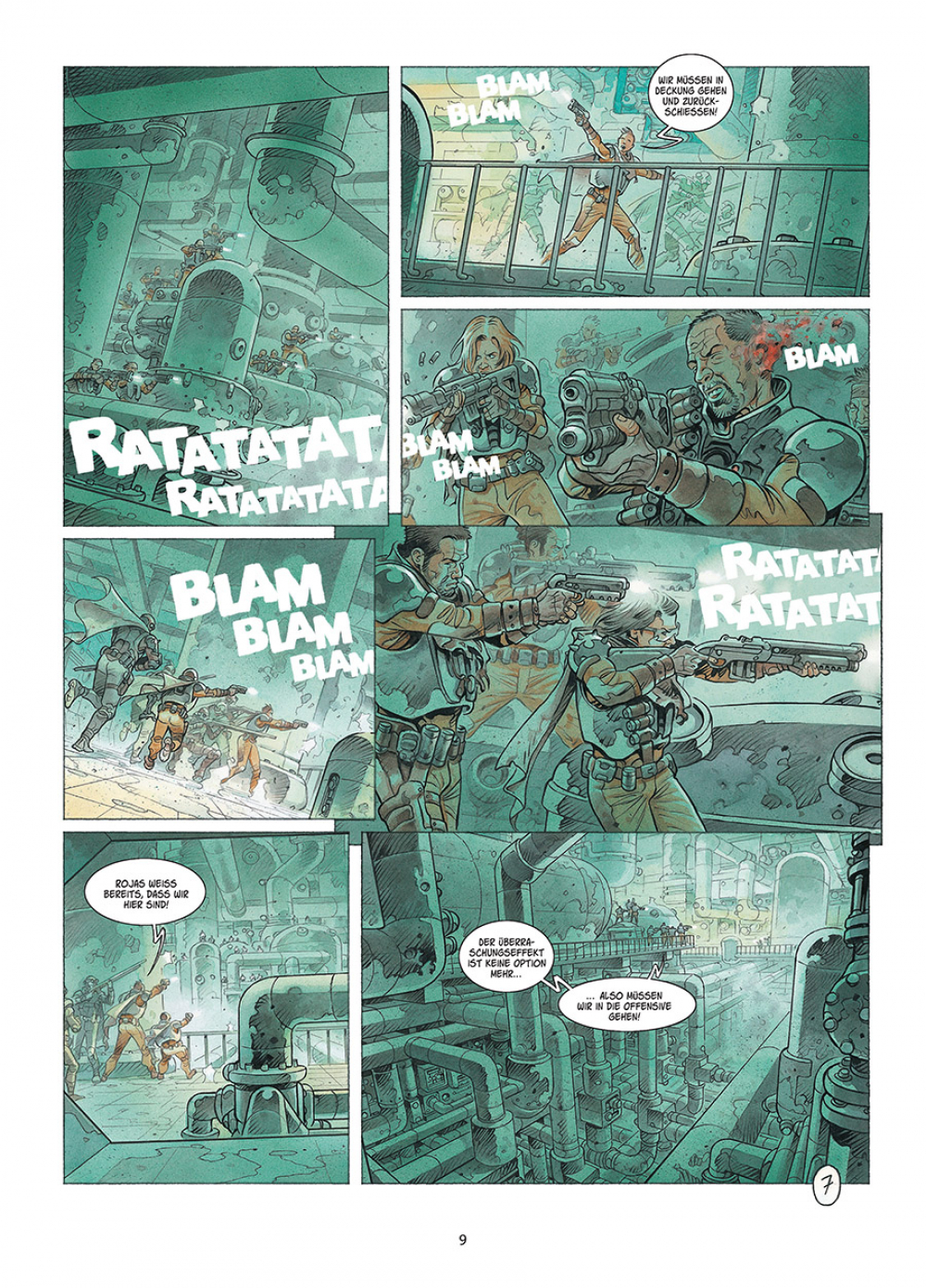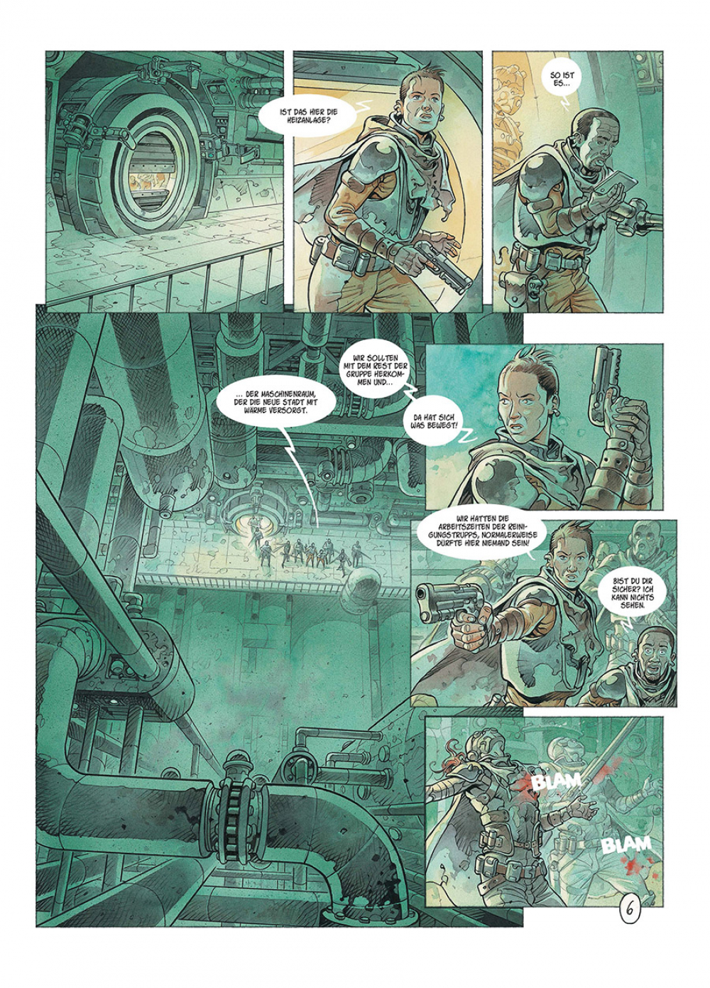 Sci-Fi-Veteran Sylvain Runberg (»Orbital«) bleibt seiner Linie treu. Nach Aliens und sonstigen »Star Trek«-Versatzstücken such man in »On Mars_« vergeblich. Stattdessen lotet Runberg die Prämisse einer nahen Zukunft aus, in welcher der Fortbestand der Menschheit von einer Gefangenenkolonie abhängt – politisch, philosophisch, religiös. Gruns realistischer und bis ins kleinste Detail ausgearbeiteter Stil fügt sich nahtlos in diese Fiktion.