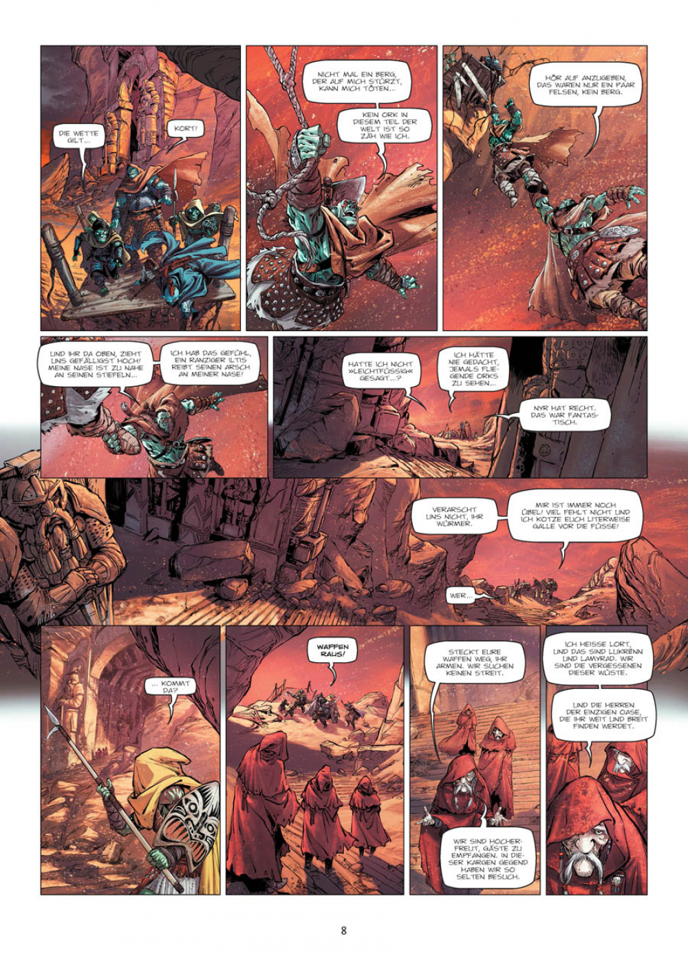 Jeder Band erzählt eine abgeschlossene Geschichte, die von unterschiedlichen Kreativteams realisiert wird, alles bekannte Namen der französischen Comic-Welt. Und wer weiß, vielleicht tauchen die grünhäutigen Helden von »Orks & Goblins« auch in den kommenden Alben ihrer ach-so-edlen Feinde auf?