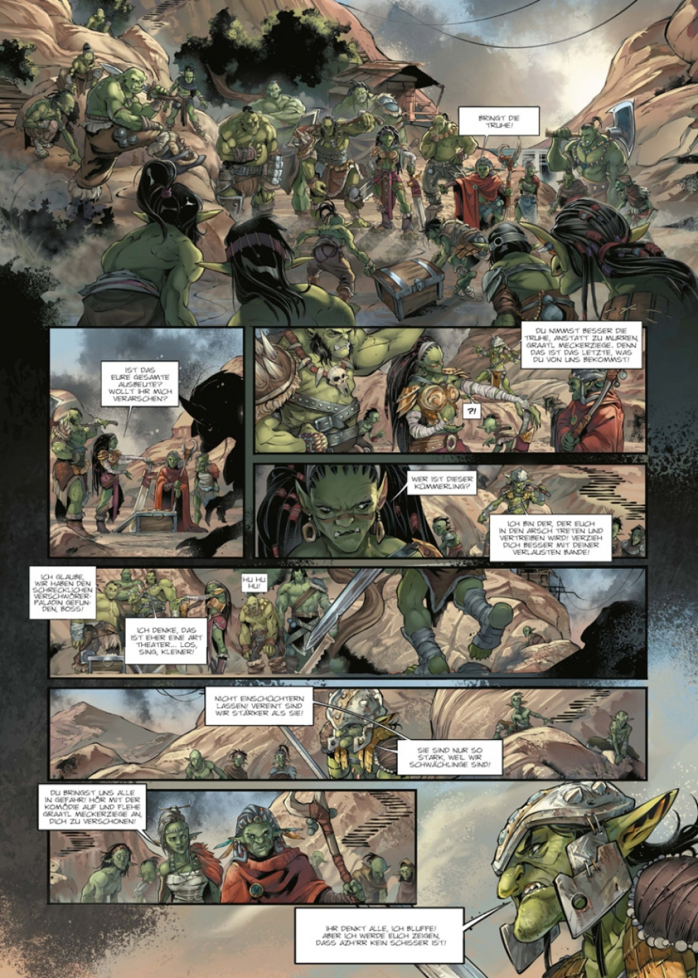 Jeder Band erzählt eine abgeschlossene Geschichte, die von unterschiedlichen Kreativteams realisiert wird, alles bekannte Namen der französischen Comic-Welt. Und wer weiß, vielleicht tauchen die grünhäutigen Helden von »Orks & Goblins« auch in den kommenden Alben ihrer ach-so-edlen Feinde auf?
