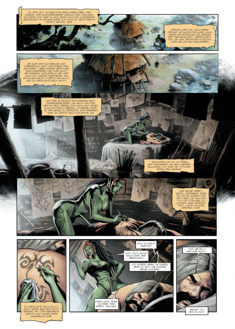 Oruna ist eine seltene Kreatur: Eine Orkfrau von überwältigender Schönheit. Das macht sie zum begehrten Ziel für einen mächtigen Sammler Alter Völker, der sie in eine Festung in der Ogerwüste verschleppen lässt, um sie seinem Harem einzuverleiben. Oruna wird misshandelt und gequält, ausgehungert und unter Drogen gesetzt. Aber die Orkfrau ist nicht zufällig hier, und ihre Seele dürstet nach Rache...