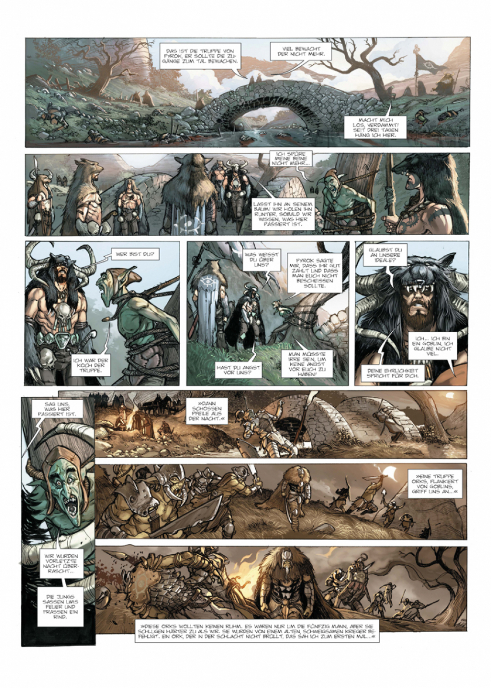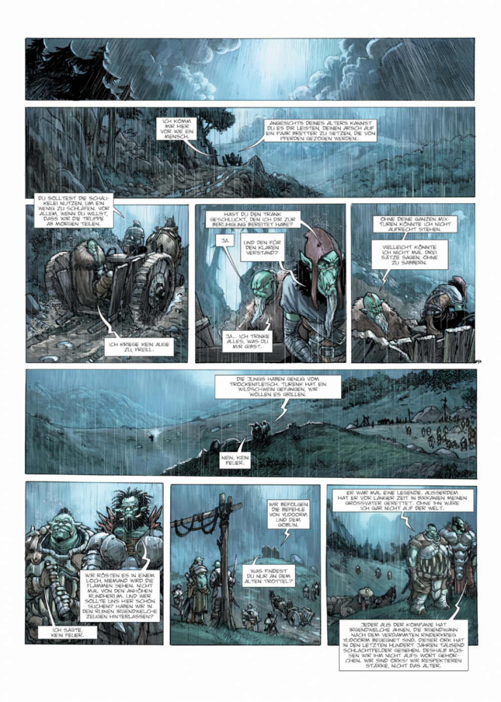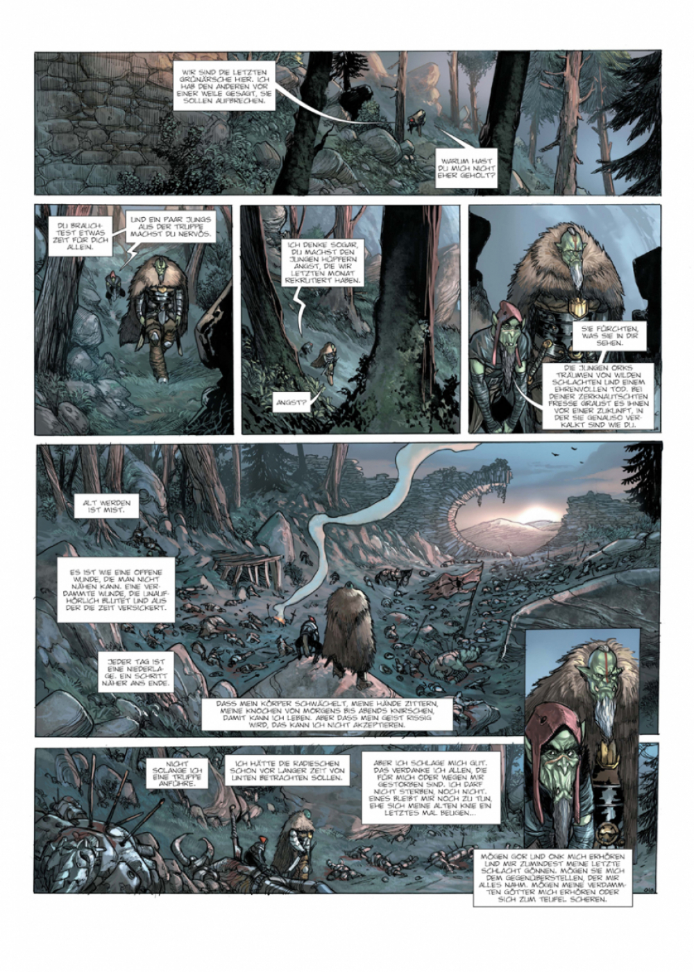 Heute zählt sein Gesicht mehr Falten als Narben. Der alte Ork hat nichts mehr von einem Schlächter, er ist nicht einmal mehr ganz bei Verstand. Und dennoch hat er wieder zu den Waffen gegriffen. Ein alter, unerledigter Kampf ist ihm in den Sinn gekommen, und diesmal will Yudoorm die Sache endgültig zu Ende bringen. Wenn er sich schon von seinen alten Knochen verabschieden soll, dann lieber mit dem Geschmack von Blut im Mund und knietief in Eingeweiden als ausgestreckt auf einem Bett.