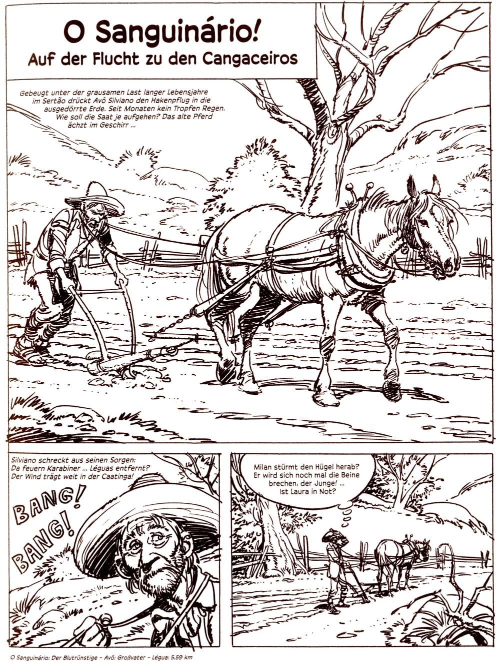 Als der Comic-Künstler Rafael Mendez 1985 das Cangaceiro-Thema mit großem Engagement aufgriff, war es neu im Comic. Gleichzeitig wurde es das letzte Werk, das der beliebte Zeichner von Hombre und Dietrich von Bern erschaffen sollte. Man strebte eine grpße Serie für ein erwachsenes Publikum an. Doch aus der Pilot-Episode wurde nur ein Fall für die Schublade, denn Mendez wurde plötzlich von einer schweren Krankheit heimgesucht, die ihn bis heute an der Arbeit hindert.