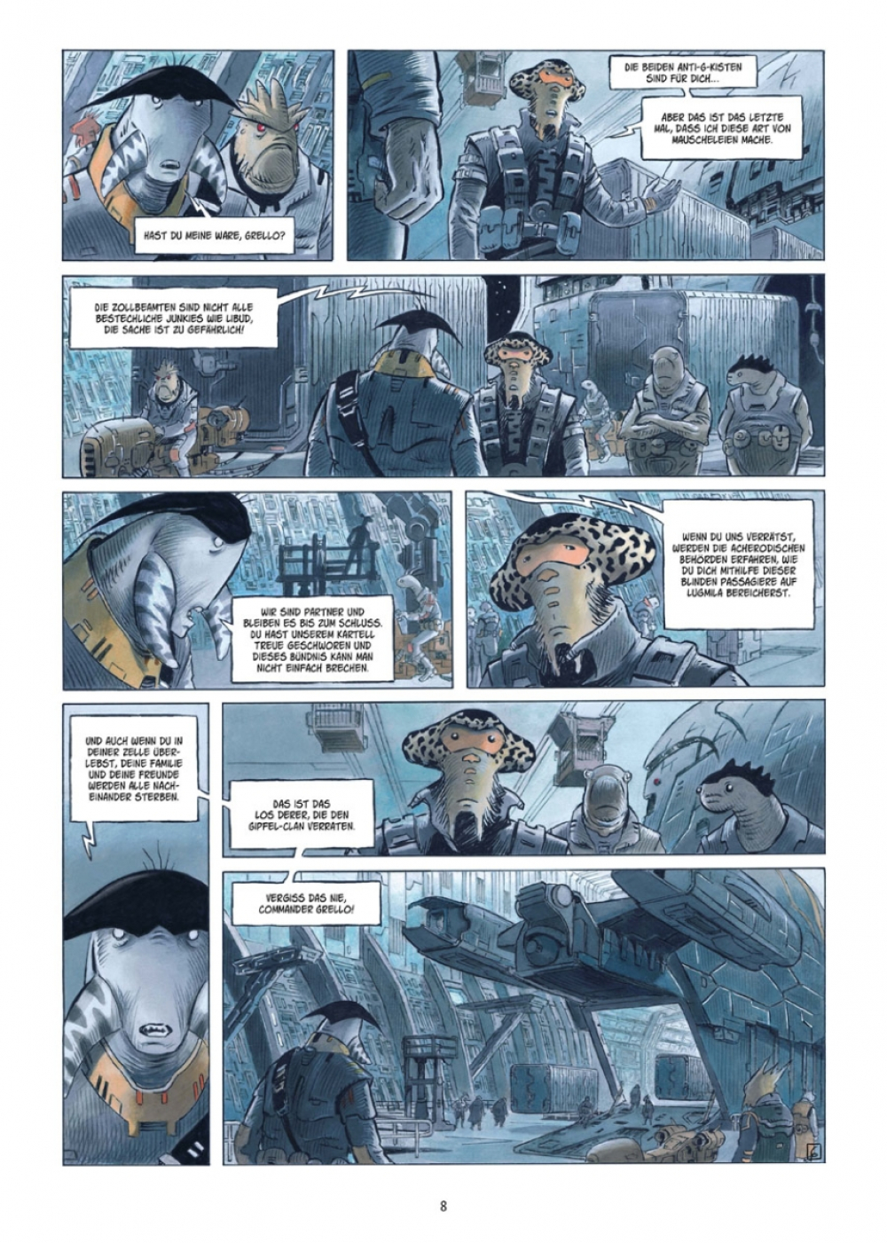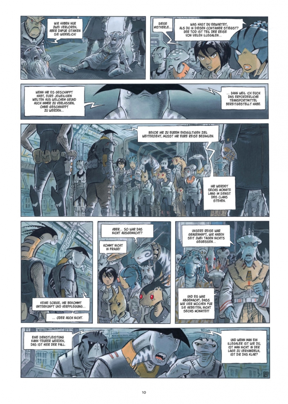 Das Jahr 2779, irgendwo im Hoheitsgebiet der Konföderation. Ein Schiff unter der Führung des berüchtigten Commander Grello läuft den Raumhafen von Lugmila an. An Bord: eine Ladung illegaler Einwanderer, die von ihren jeweiligen Planeten geflohen sind. Ihre Reise hierher verlief unter unwürdigsten Bedingungen, aber die wahre Tortur steht ihnen noch bevor, denn im Gegenzug für ihre »Rettung« haben sie alle sich verpflichtet, 6 Monate für das Gipfel-Kartell zu arbeiten – skrupellose, intergalaktische Mafiosi. Unter den Gesetzlosen befindet sich auch eine Menschenfrau, deren Spezies die zweifelhafte Ehre zuteil kommt, als letzte in die Konföderation aufgenommen worden zu sein. Sie ist stur und wortkarg und gerät bald zwischen die Fronten eines Machtkampfs mit unvorhersehbaren Folgen…
