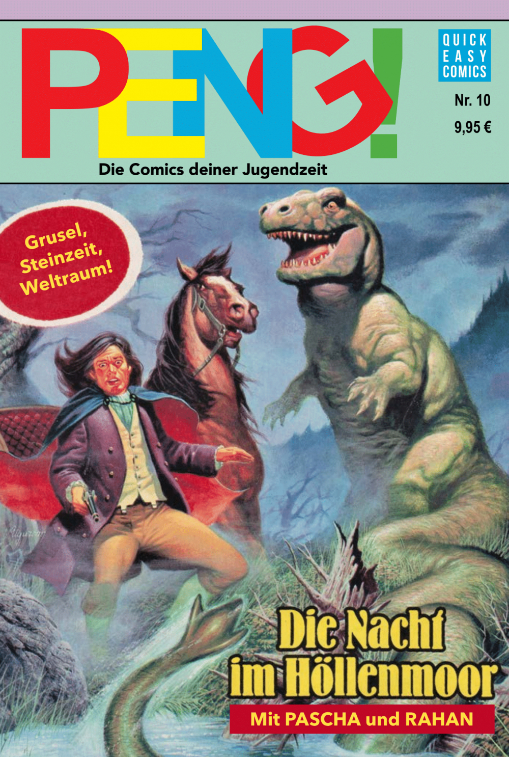 PENG! ist nach kürzerer Pause zurück und bringt in seiner 10. Ausgabe geballte Action aus den Siebzigern, nämlich ein langes, wildes Abenteuer mit RAHAN, Sohn der Vorzeit, Weltraumwahnsinn aus Spanien von Cioncha & Azpiri sowie eine kultige Gruselstory von Bevia. Aber auch der Humor kommt mit SALEM, dem Magier, PASCHA und ROBIN HUT natürlich nicht zu kurz.