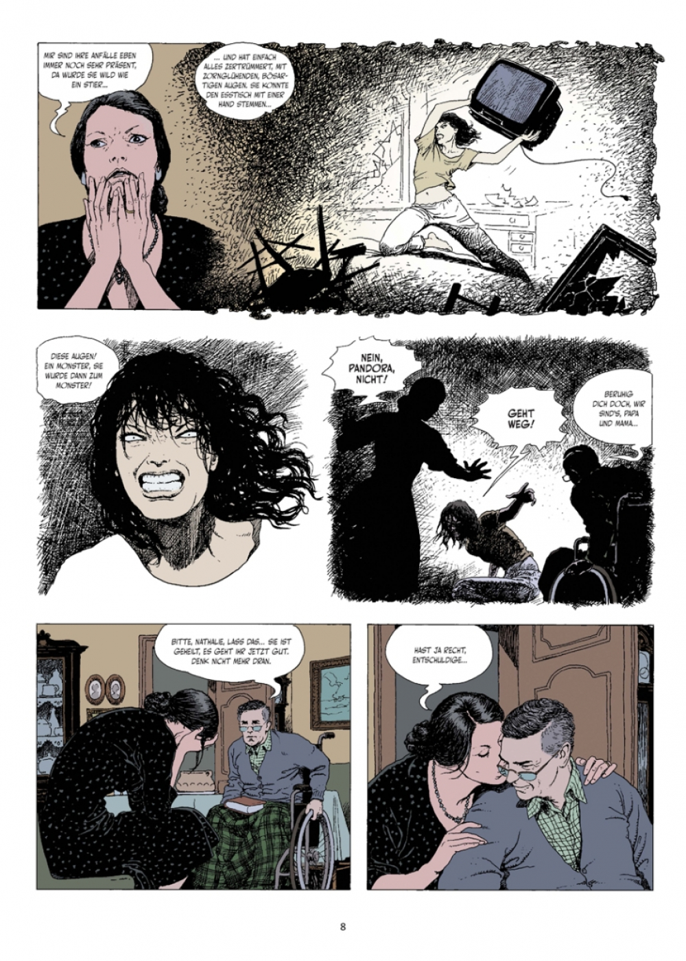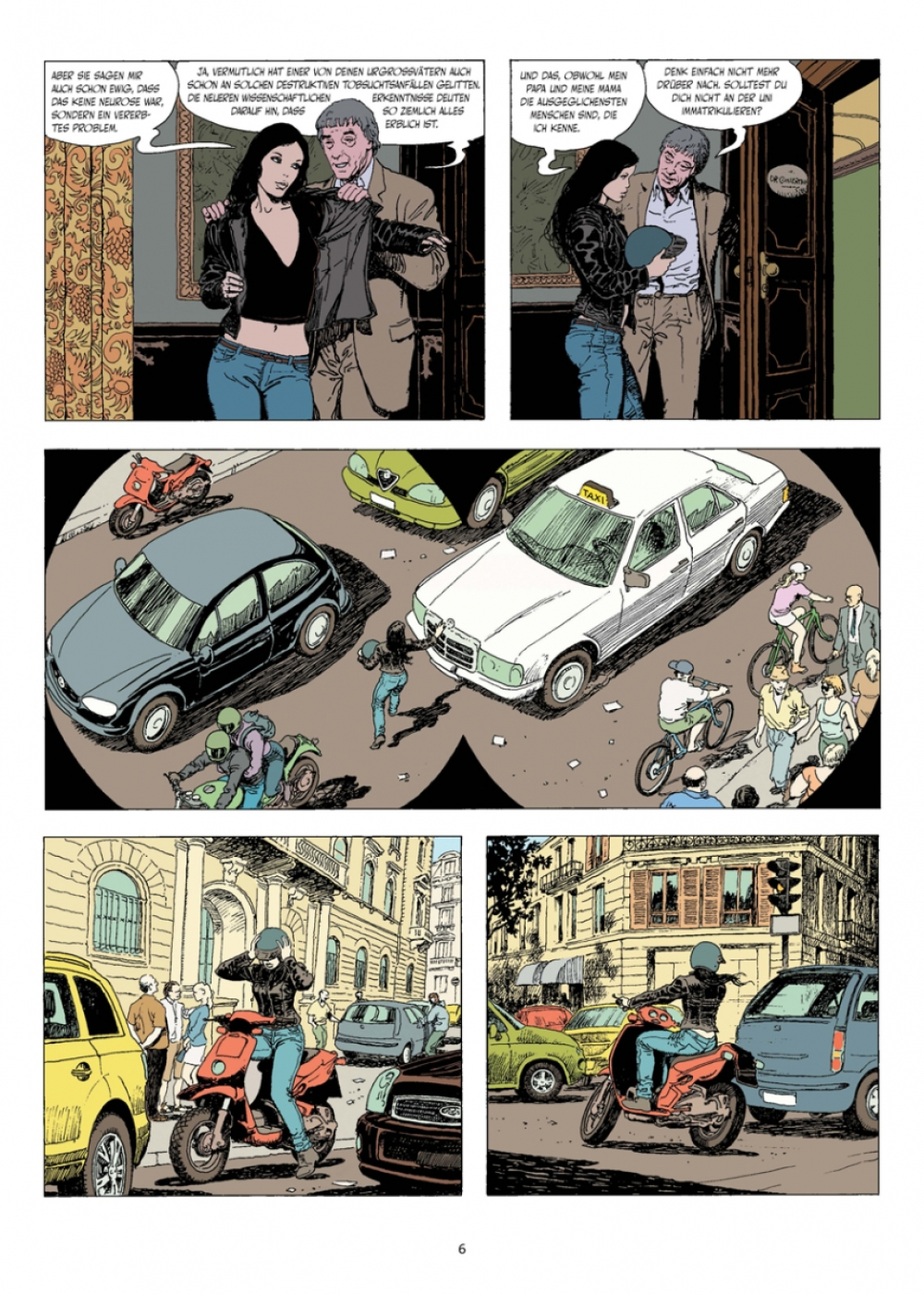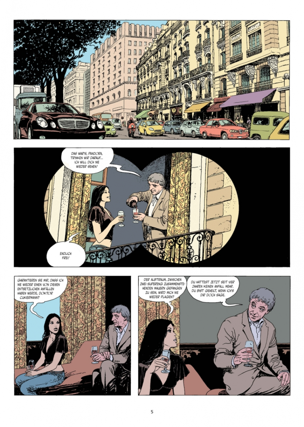 Nach einem Szenario von Vincenzo Cerami legt Manara einen rasanten Thriller vor: »Pandoras Augen« ist eine meisterliche Comic-Erzählung, bei der Spannung und Erotik Hand in Hand gehen.