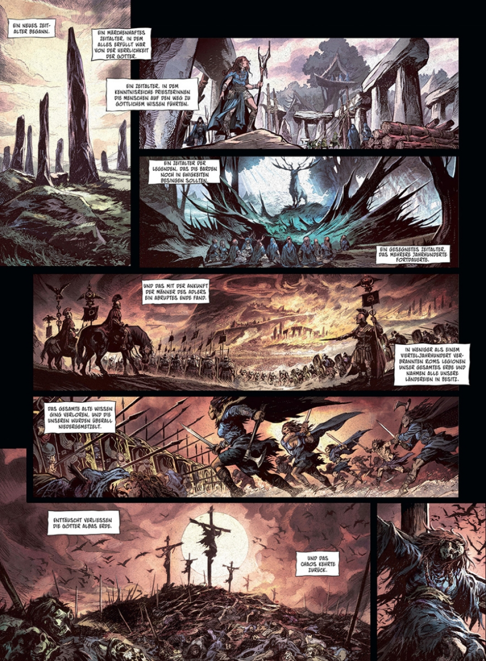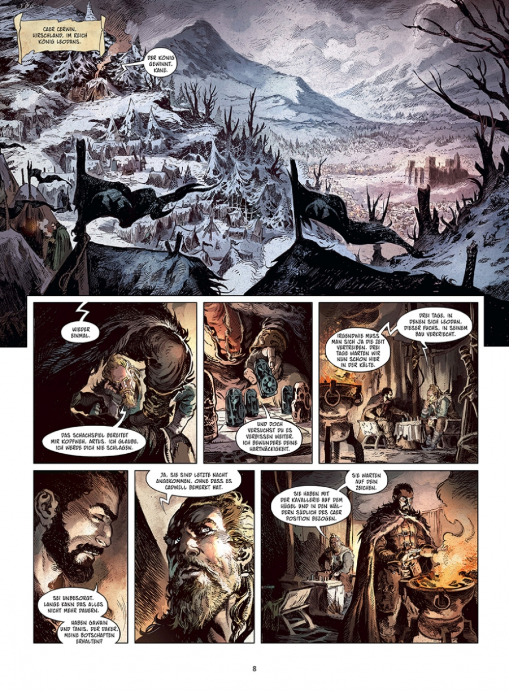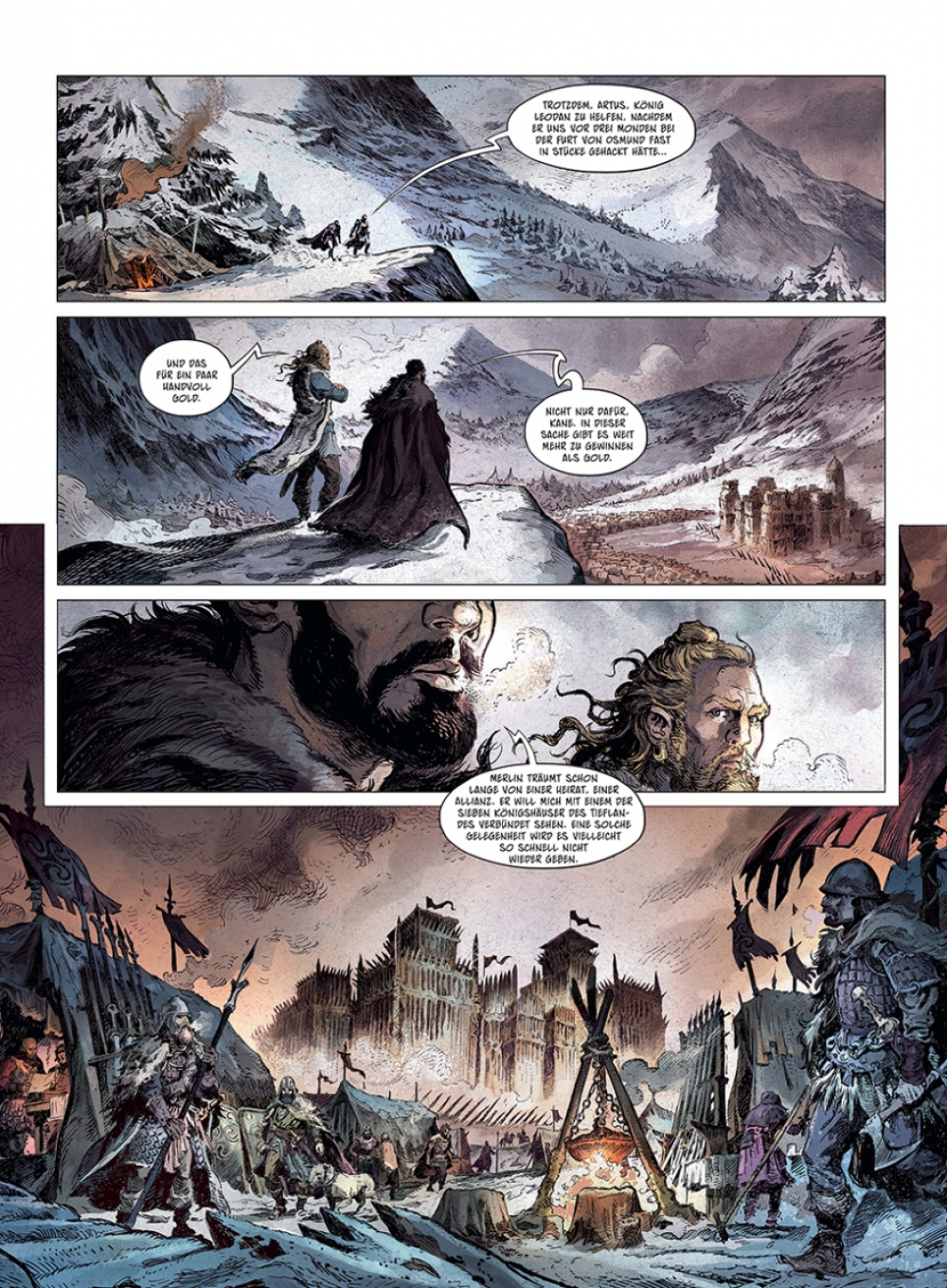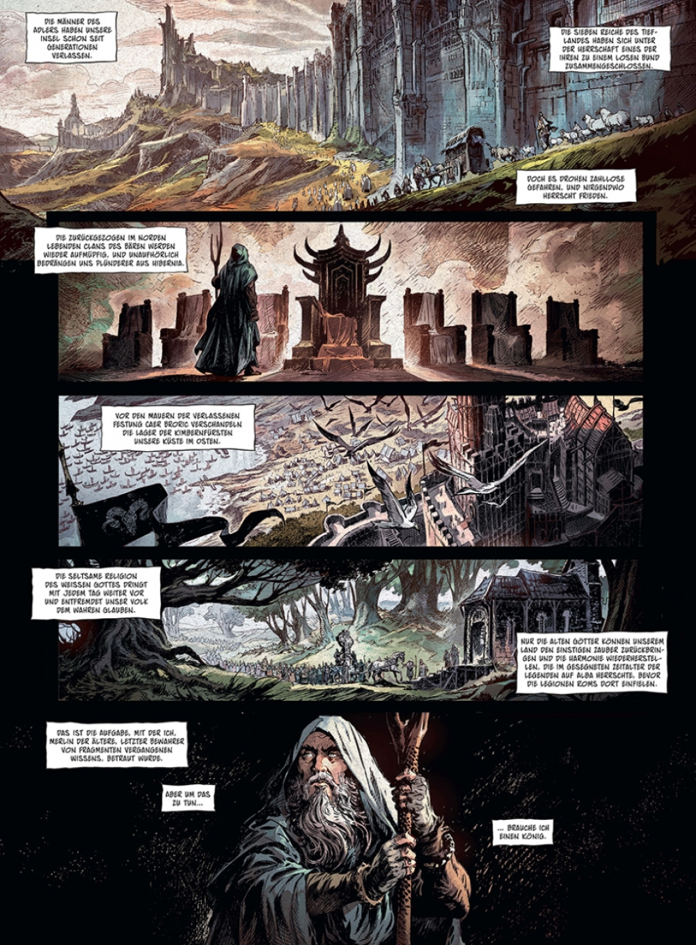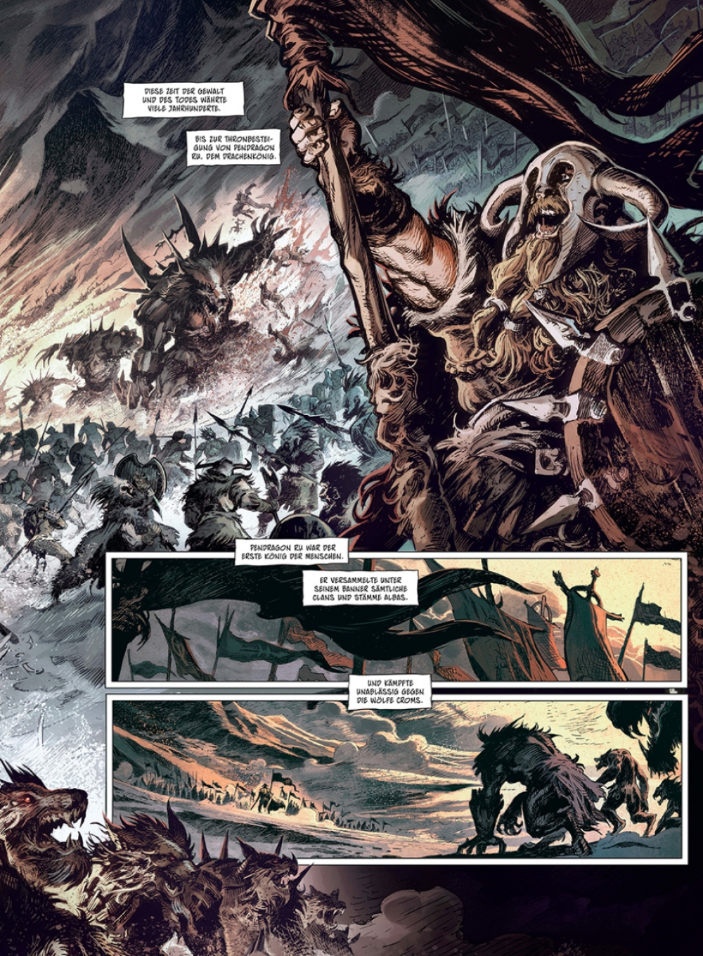 Jérôme Le Gris und Benoît Dellac, die mit »Nottingham« dem Mythos von Robin Hood neues Leben einhauchten und mit »Hawkmoon« ihr Händchen für opulente Dark Fantasy bewiesen, greifen in »Pendragon« die Artussage auf und setzen sie in einen phantastisch-historischen Kontext. Ihr überragendes Artwork tut das übrige, um diese Comic-Tetralogie zu einem Meilenstein des Genres zu machen.