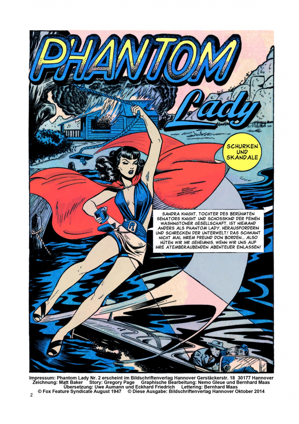 Der Bildschriftenverlag Hannover wird 11 Phantom Lady Hefte im Originalformat in deutscher Sprache produzieren und zwar in bekannter Qualität. Die beiden ersten Hefte dieser kleinen Sammleredition erscheinen im November 2014. Alle Hefte sind komplett vierfarbig und haben einen Umfang von 32 – 36 Seiten (nur Comics). Der Preis pro Heft liegt voraussichtlich bei € 12,90.