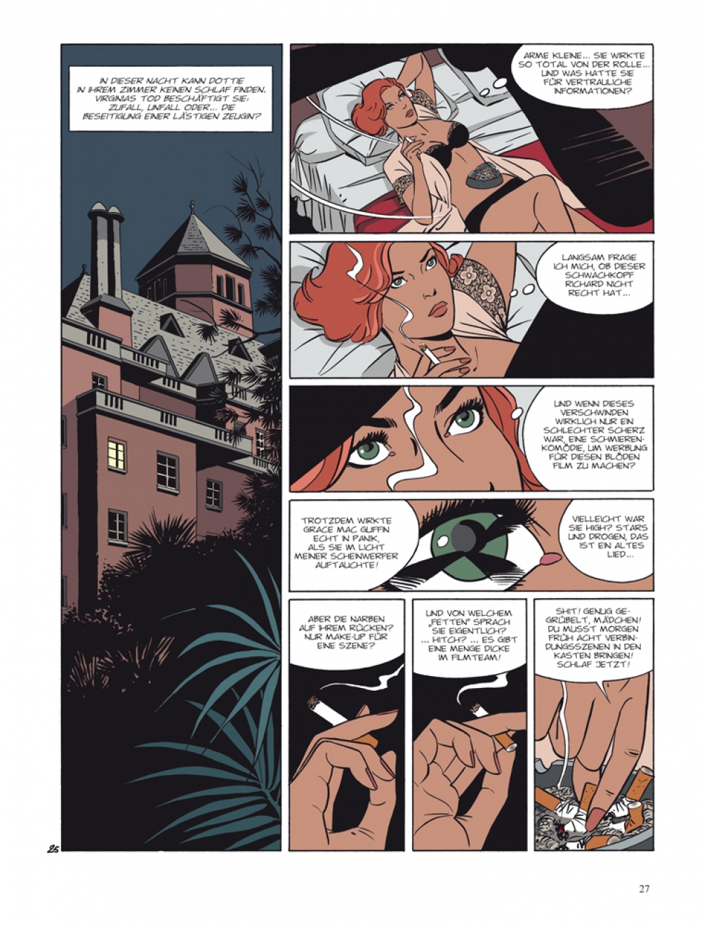 1946: Dottie arbeitet in Los Angeles für einen Privatdetektiv. Eine Unbekannte, den Rücken von Peitschenstriemen übersät, läuft ihr eines Nachts ins Auto und verschwindet spurlos. Grace Mac Guffin, das Opfer, drehte mit dem großen Regisseur Alfred Hitchcock. Hat er etwas mit dem Verschwinden seines Stars zu tun?