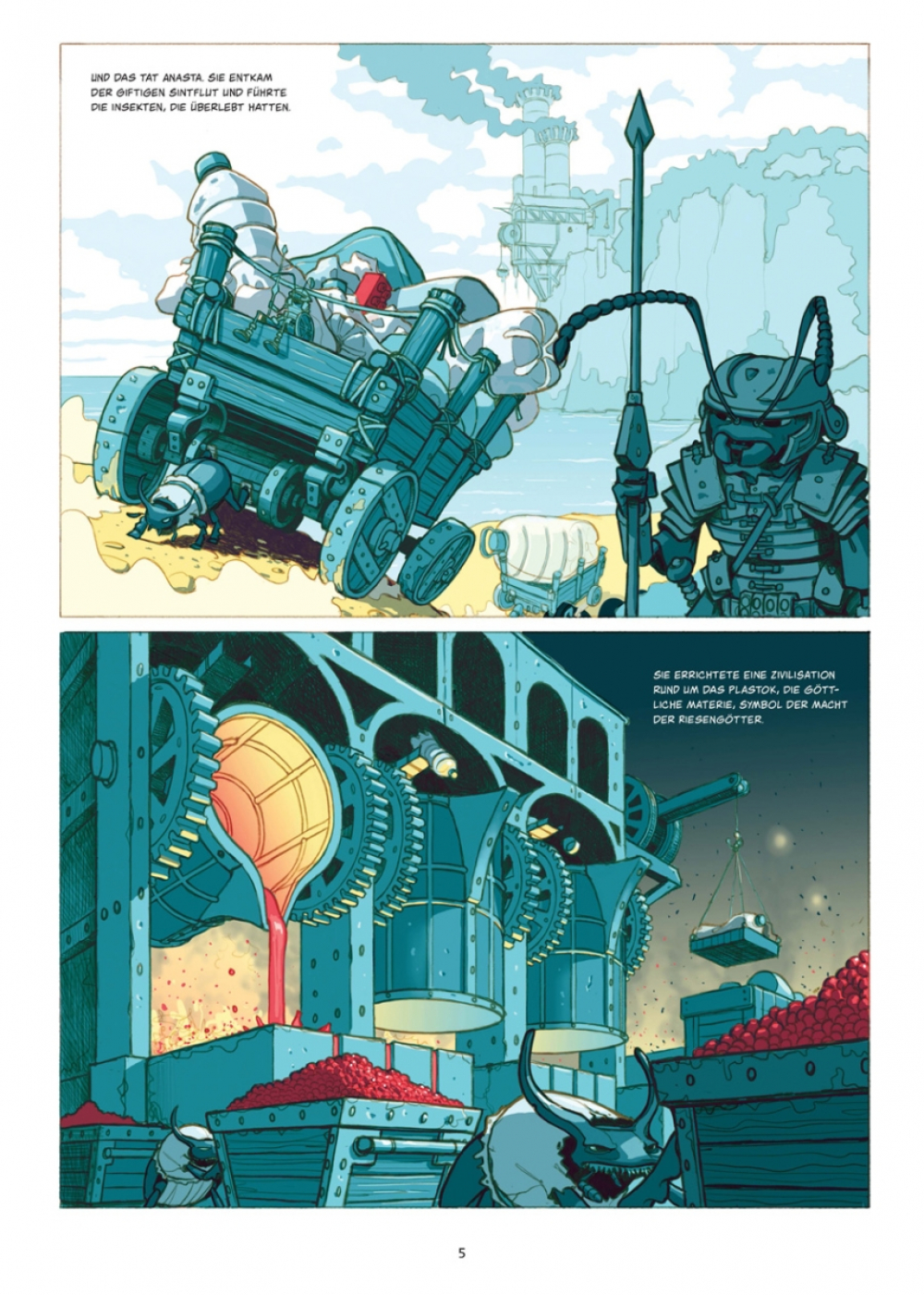 Tausende Jahre lebten die riesigen Götter und die Insekten in perfekter Harmonie. Als die Insekten immer zahlreicher wurden, fluteten die Götter die Erde mit Gift. Doch damit besiegelten sie bloß ihr eigenes Schicksal. Die Insekten überlebten und errichteten eine neue Zivilisation inmitten der einzig verbleibenden Überreste der Giganten: dem Plastok.