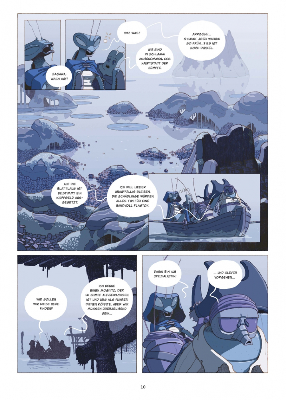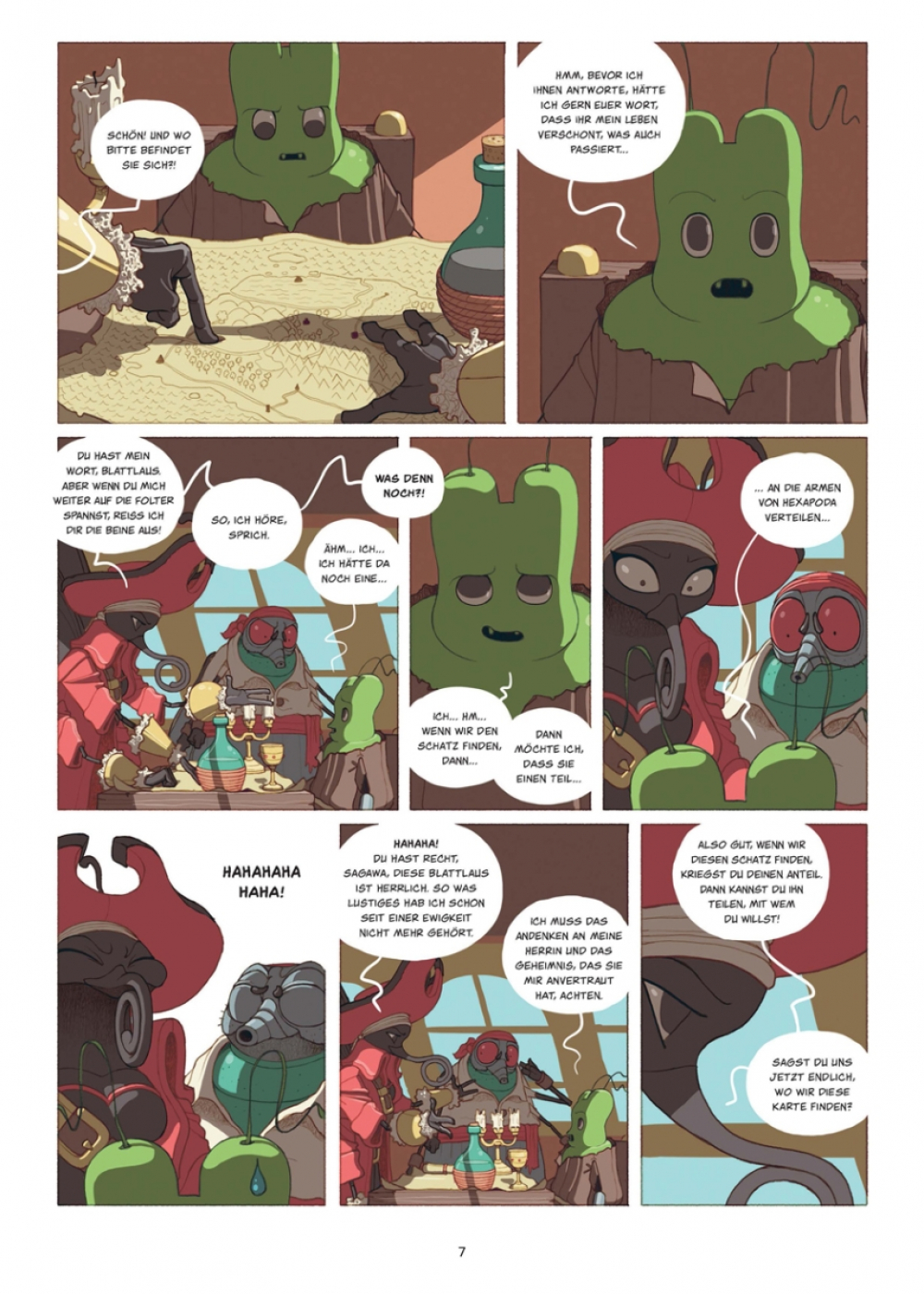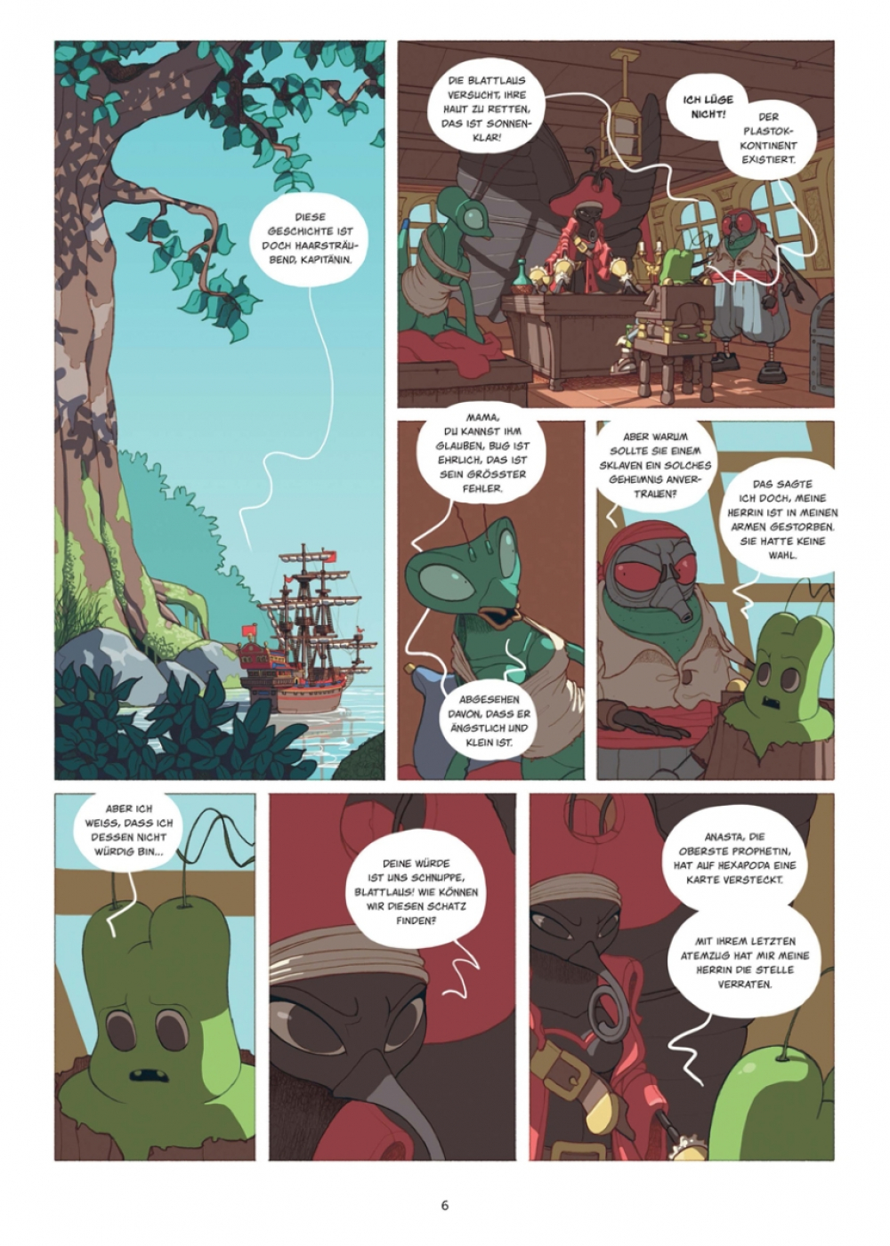 Seit der Ermordung einer Hohepriesterin gilt Bug, die Blattlaus, als Staatsfeind Nummer 1 im Staat der Insekten! Zum Glück kann er auf die Hilfe der Gottesanbeterin Sagawa zählen, die ihn nach seiner Verbannung aus Hexapoda auf dem Piratenschiff ihrer Mutter aufnimmt. Es gibt jedoch eine Bedingung: Bug muss sie und ihre Crew zum sagenumwobenen Kontinent der verschwundenen Menschen führen. Der Geflüchtete hat keine Wahl, aber zuerst braucht er eine Karte zu diesem Plastok-Eldorado, und die soll sich in der Höhle einer achtbeinigen Hexe befinden. Die Höhle wiederum liegt in einem widerlichen Sumpf verborgen, in dem es vor Getier nur so wimmelt... und bei alldem stellt sich weiterhin die entscheidende Frage, wer durch das Ableben der Hohepriesterin profitiert.