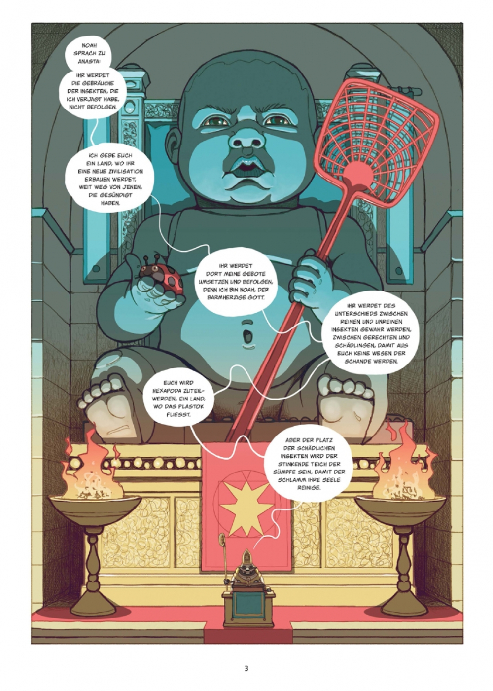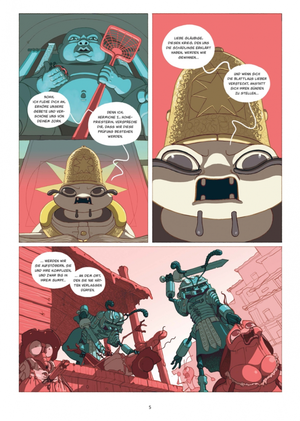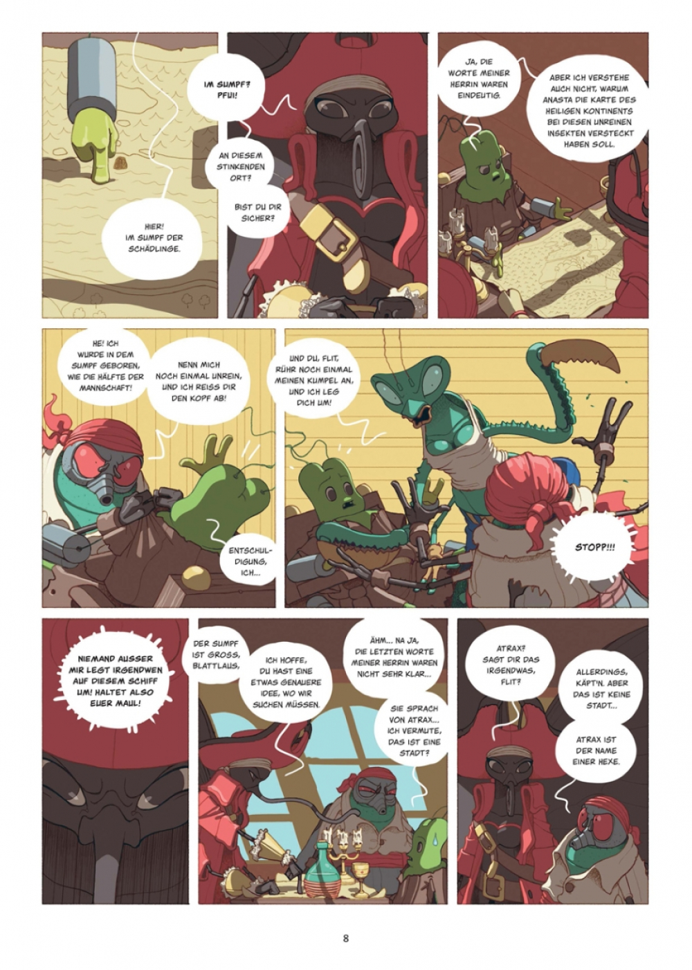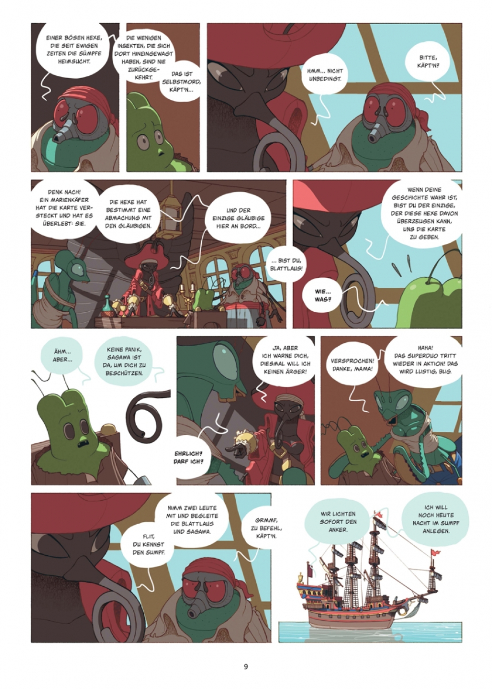 Seit der Ermordung einer Hohepriesterin gilt Bug, die Blattlaus, als Staatsfeind Nummer 1 im Staat der Insekten! Zum Glück kann er auf die Hilfe der Gottesanbeterin Sagawa zählen, die ihn nach seiner Verbannung aus Hexapoda auf dem Piratenschiff ihrer Mutter aufnimmt. Es gibt jedoch eine Bedingung: Bug muss sie und ihre Crew zum sagenumwobenen Kontinent der verschwundenen Menschen führen. Der Geflüchtete hat keine Wahl, aber zuerst braucht er eine Karte zu diesem Plastok-Eldorado, und die soll sich in der Höhle einer achtbeinigen Hexe befinden. Die Höhle wiederum liegt in einem widerlichen Sumpf verborgen, in dem es vor Getier nur so wimmelt... und bei alldem stellt sich weiterhin die entscheidende Frage, wer durch das Ableben der Hohepriesterin profitiert.