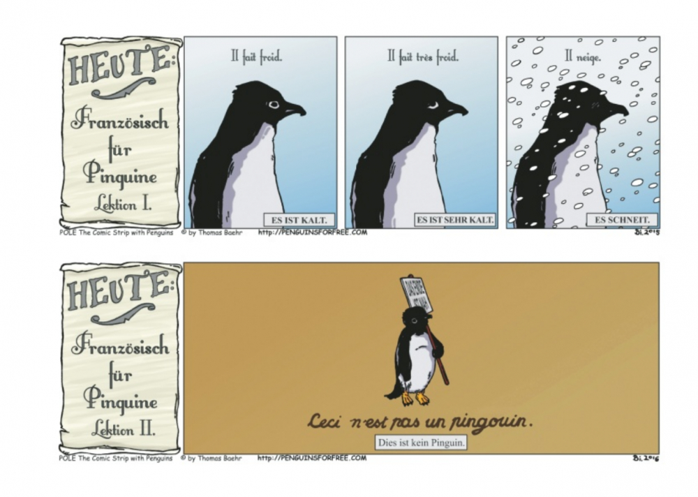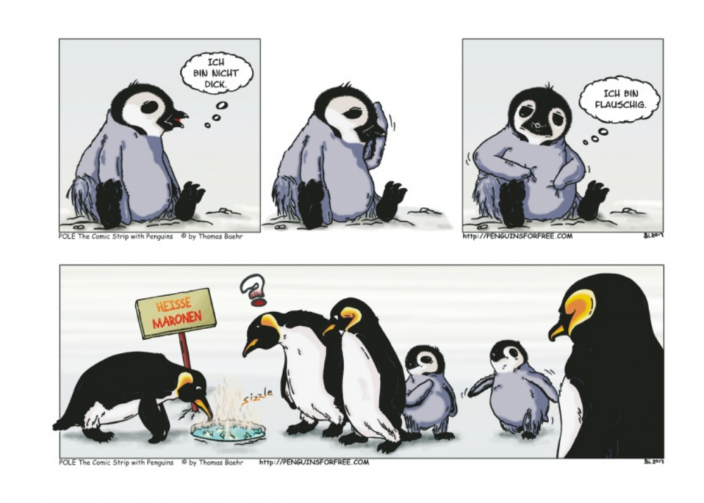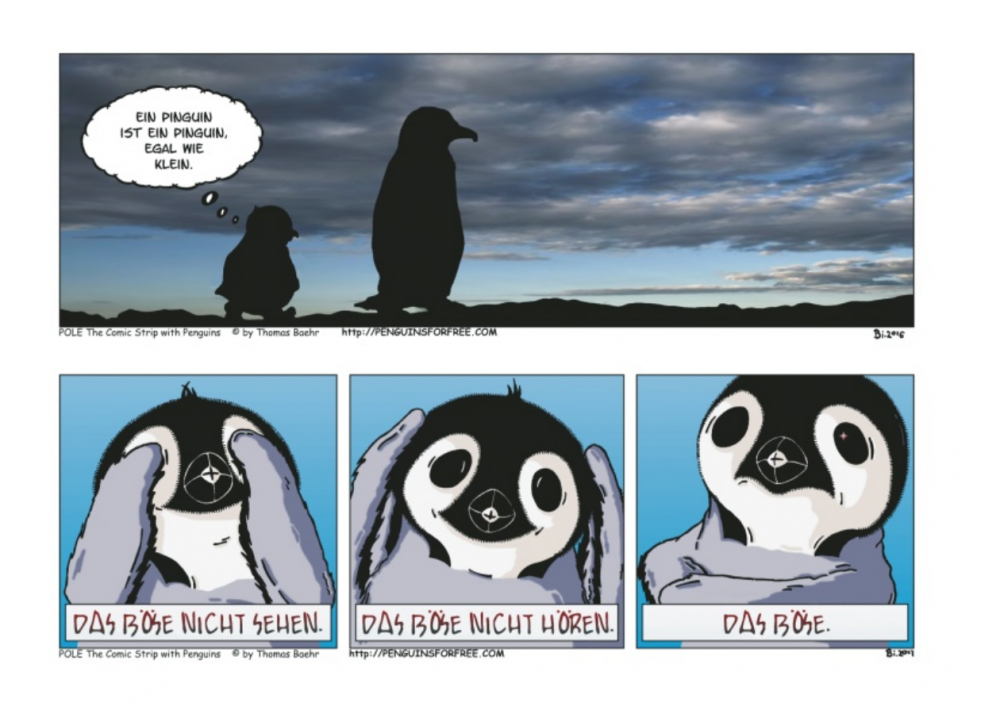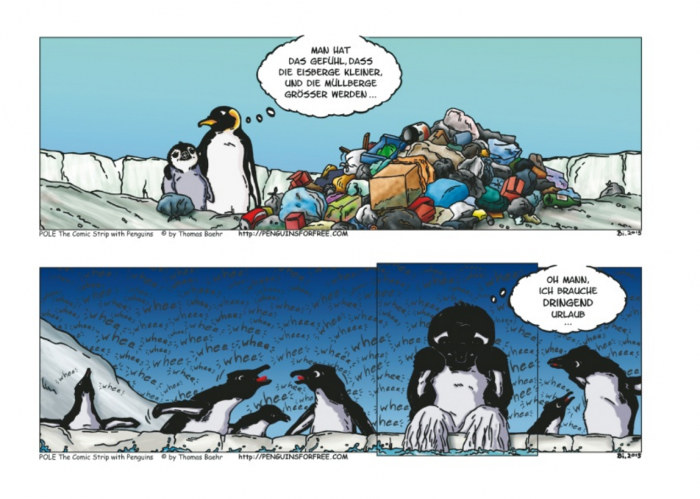 Thomas Baehr, Comiczeichner aus Brooklyn, ist den Bewohnern des Pols verfallen. Ganz besonders haben es ihm die knuffigen Pinguine angetan, die nicht nur unter der Erwärmung leiden, sondern zudem von zutiefst menschlichen Problemen geplagt sind. Der deutsche Zeichner, den es nach New York verschlagen hat, zeichnet mit spitzer Feder den Alltag der Laufvögel: mal lustig, mal nachdenklich, voller Details und überrraschend. Dank Gringo Comics kommen nun auch deutsche Leser in den Genuss des Pinguin-Strips POL.