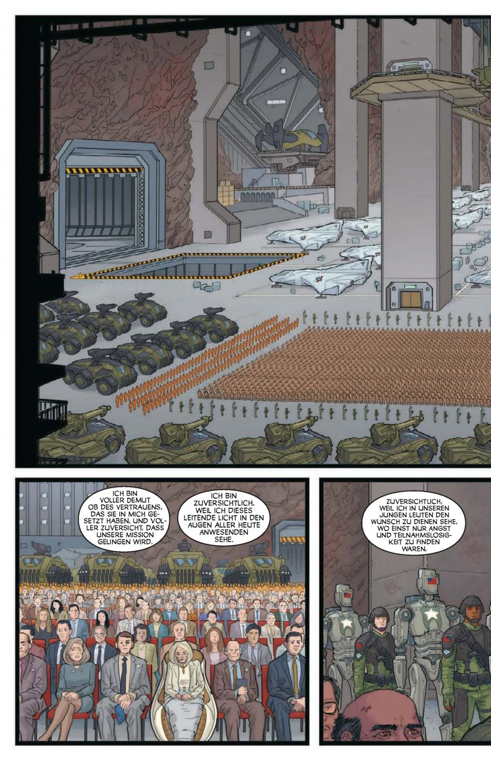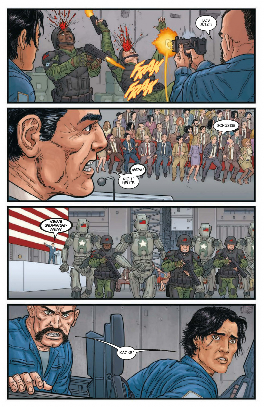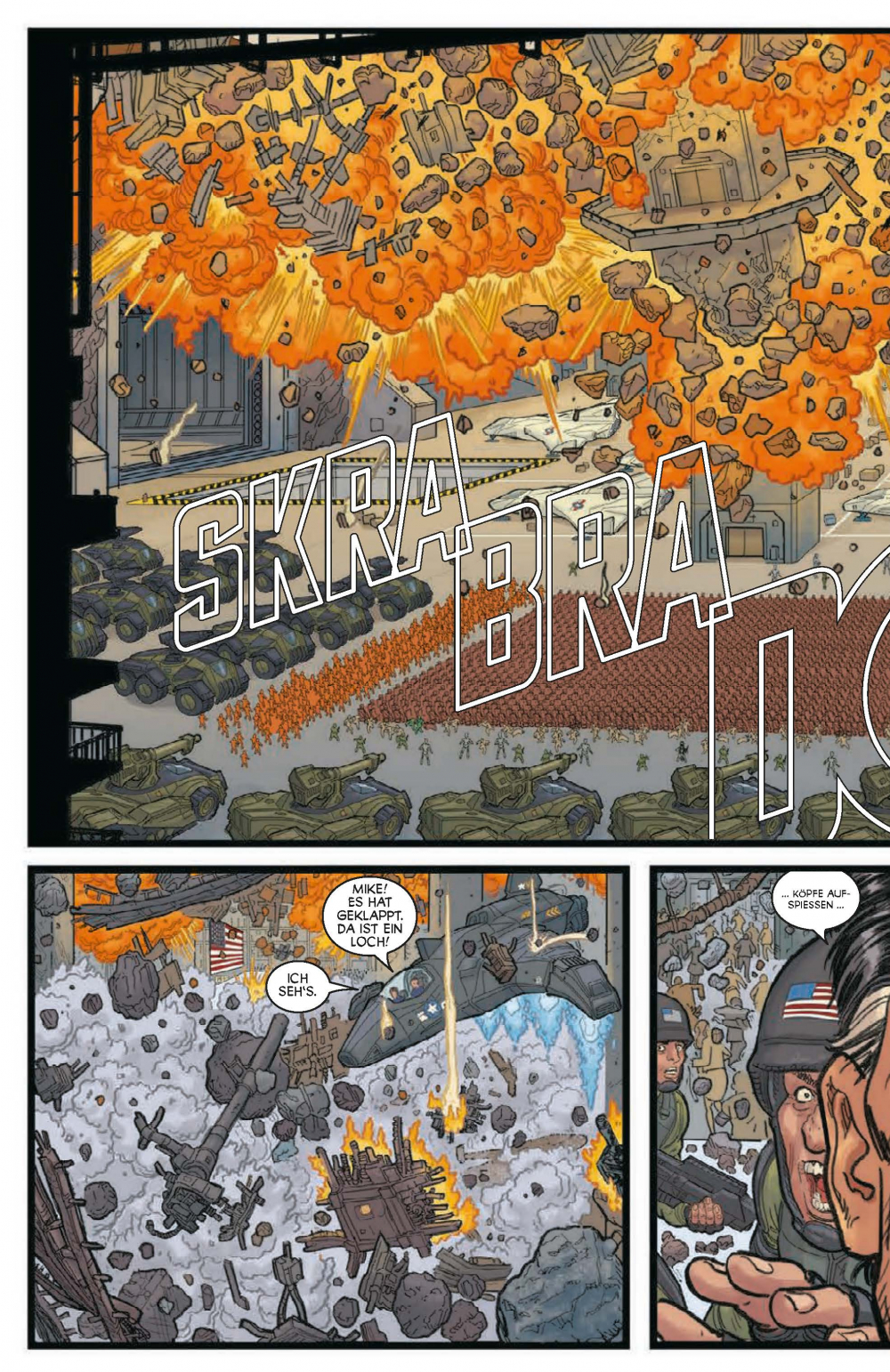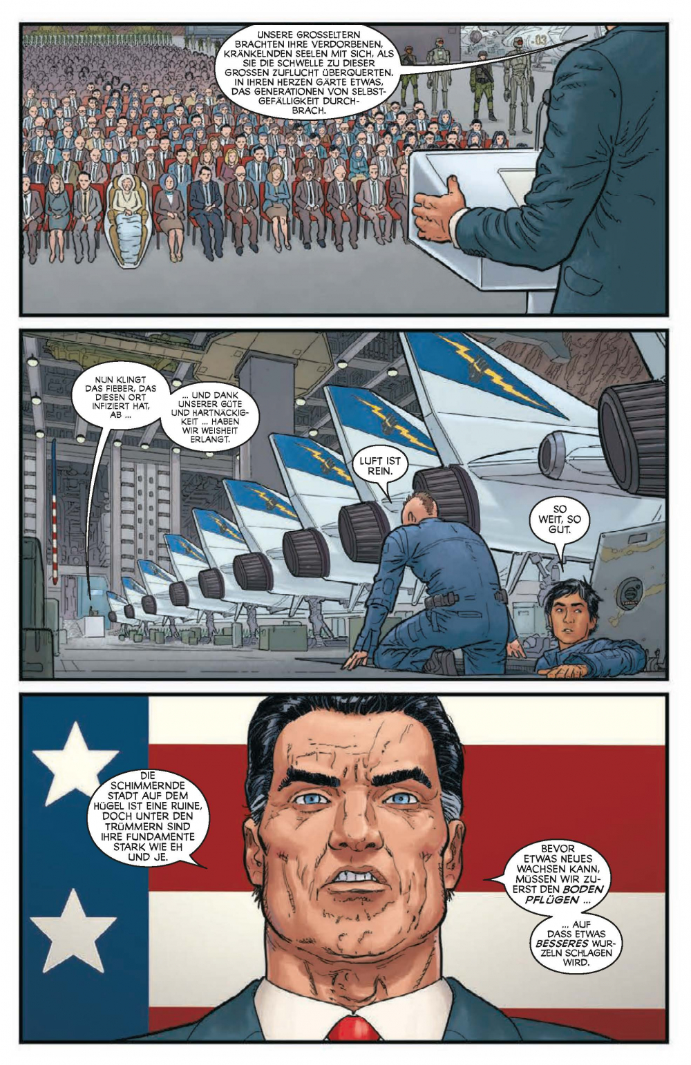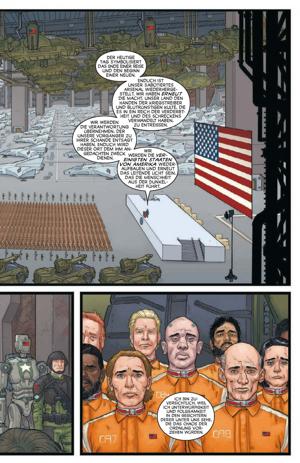 Ein dystopischer Kracher von Steve Skroce (MAESTROS, WE STAND ON GUARD, MATRIX) mit der Kolorierung von Eisner-Award-Gewinner Dave Stewart, der uns ins apokalyptische Ödland Amerikas katapultiert.