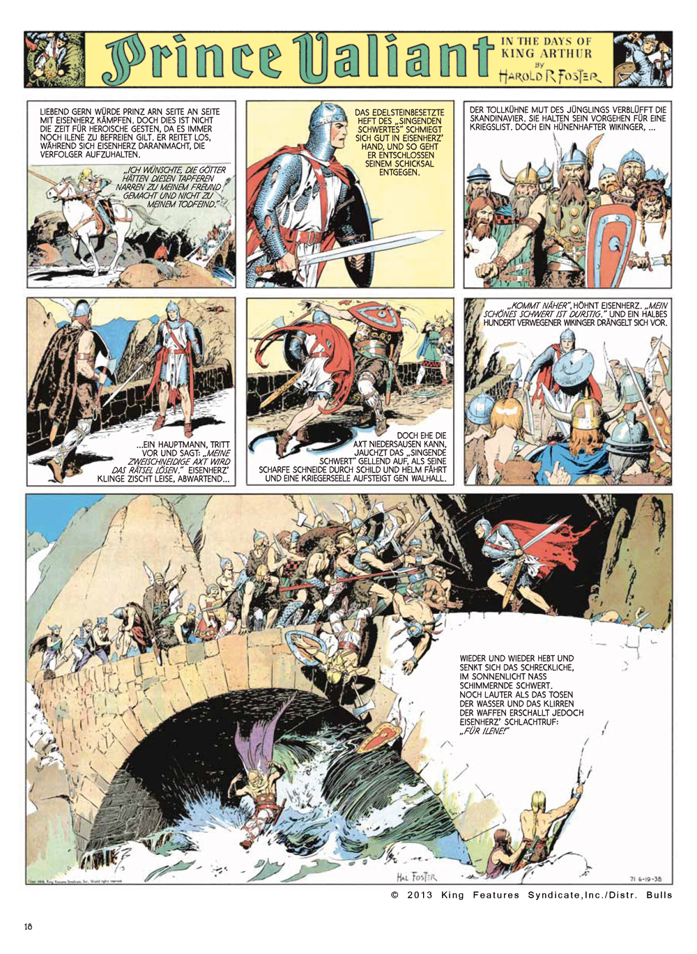 Kaum ein Held ist so bekannt wie Prinz Eisenherz. Zeitweilig erschien Prince Valiant (Originaltitel) weltweit in mehr als 300 verschiedenen Zeitungen. Millionen von Lesern sind seit 1937 – als der Comic zum ersten Mal erschien – begeistert und fasziniert. Die Abenteuer des Prinzen aus Thule beeindrucken noch heute durch ihre großartige zeichnerische Qualität. Aber auch die Geschichten des Ritters von König Arthurs Tafelrunde sind überaus spannend erzählt. Hal Foster (1892 – 1982) hat hier einen, der ganz großen Klassiker der Comic-Literatur geschaffen.