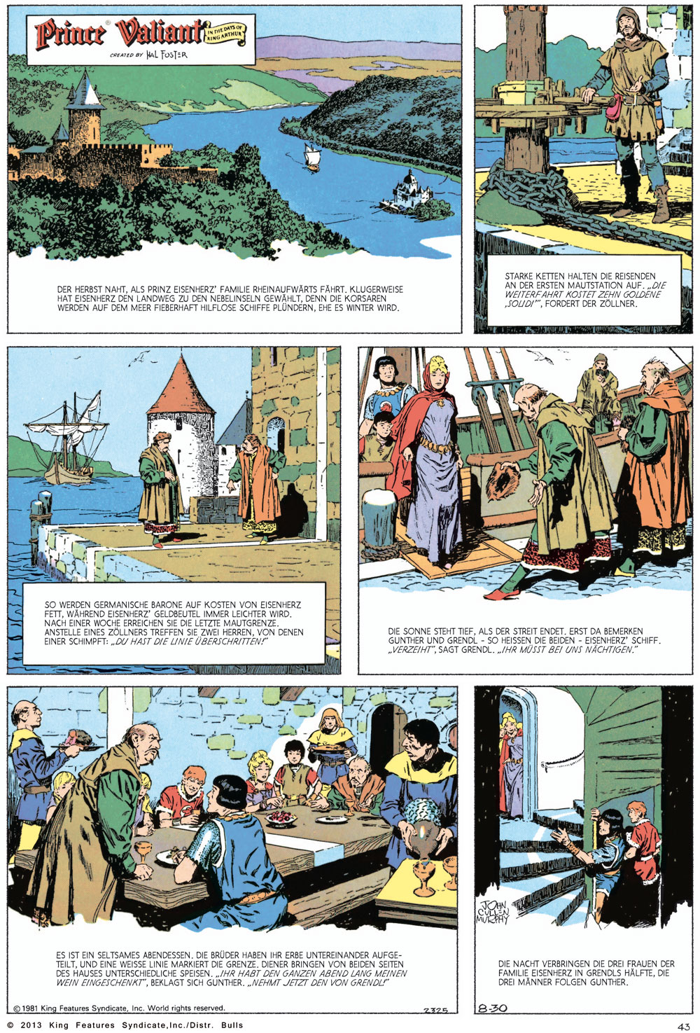 John Cullen Murphy war der auserkorene Nachfolger des genialen Hal Foster. Bis März 2004 (Seite 3501) führte er die Serie fort. 1971, das Jahr, in dem die letzte vollständig von Foster angefertigte Seite erschien, war nicht der Schlusspunkt der Beziehung zwischen Foster und seinem Prinzen. Noch bis Anfang 1980, er war jetzt stolze 87 Jahre alt, schrieb er die Story, überwachte die Farbgebung und fertigte Vorzeichnungen an. Diesen Zeitraum, die 'Foster & Murphy-Jahre', veröffentlicht der Bocola Verlag nun auch digital überarbeitet. Nicht zuletzt hat uns der Wunsch zahlreicher Fans nach Fortsetzung dazu bewogen, den Abenteuern des Prinzen aus Thule noch ein wenig länger zu folgen. Diese fünfbändige Reihe wird im Umfang und in der Ausstattung unserer Prinz Eisenherz Hal Foster-Gesamtausgabe sehr ähnlich sein.