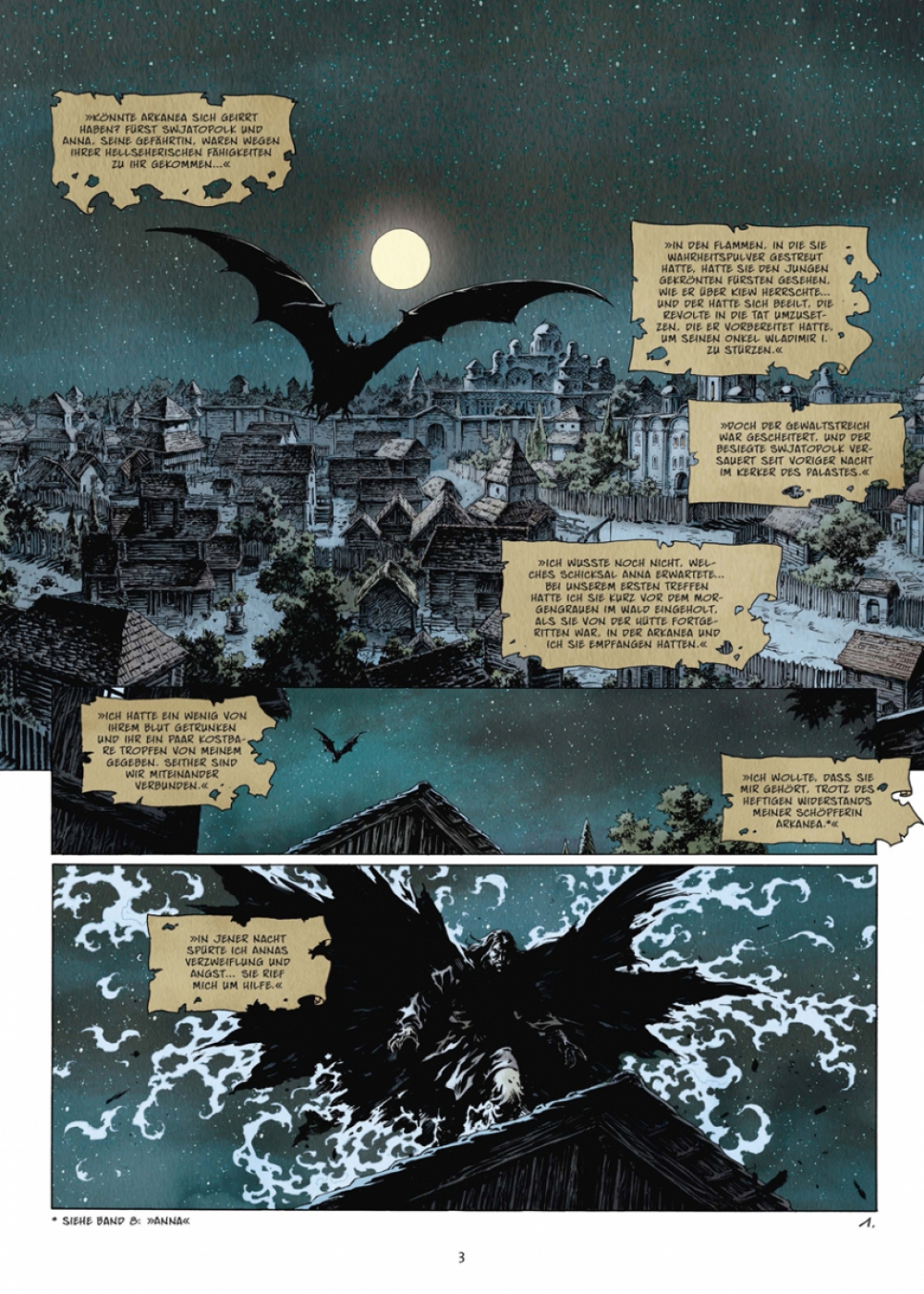 "Im dritten Zyklus seines Vampirklassikers erzählt Comic-Virtuose Yves Swolfs aus der Jugend von Kergan. Welche schrecklichen Ereignisse machten den vielversprechenden Jüngling zum unheiligen Monster, zum Prinzen der Nacht? Wir tauchen tief ein in die Urquelle des reinen Bösen... Er ist der Ursprung allen Übels. Die Wurzel des Bösen. Der Fluch aller Lebenden, von deren Blut er sich ernährt. Vladimir Kergan, der Prinz der Nacht. Ein unsterblicher Vampir, der seit Urzeiten unerbittlich Jagd macht auf die Mitglieder der Familie Rougemont. Deren Nachkommen kennen daher nur ein Ziel: Den Prinzen der Nacht finden, und das Antlitz der Erde von seiner unheiligen Präsenz säubern.