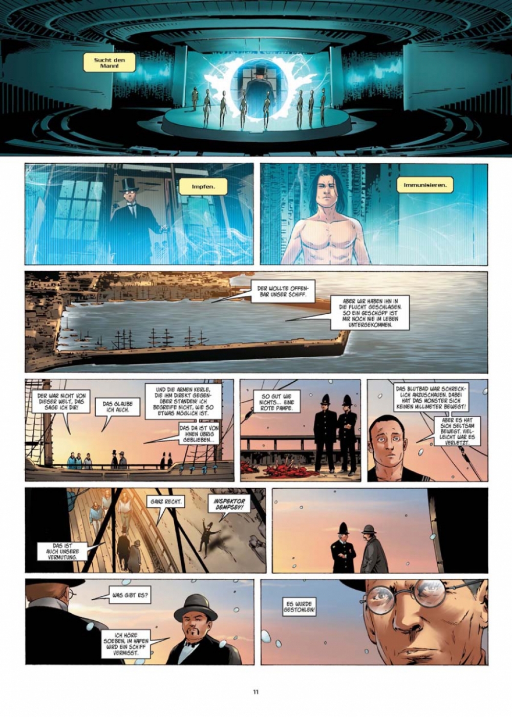 22. Sept., 13.13 Uhr – Alle Uhren des Planeten bleiben stehen. Im selben Augenblick setzt sich der Andikythira-Mechanismus eines seltsamen Astrolabiums in Gang, das bisher kein Wissenschaftler aktivieren konnte.23. Sept., 13.13 Uhr – Die Raumfähre Atlantis taucht wieder auf und landet in Cap Canaveral. An Bord ist nur ein Überlebender, der Kommandant der Mission – inmitten der zerstückelten Leichen seiner Mannschaft.24. Sept., 13.13 Uhr – Ein amerikanisches U-Boot ortet ein deutsches Militär-U-Boot, das sechzig Jahre zuvor verschwand... Die Besatzung eines Fischkutters sieht, wie sich der Rumpf der Titanic aus dem Meer erhebt, die über 100 Jahre zuvor an derselben Stelle versank.Mit Prometheus gelingt Christophe Bec ein atemberaubend spannendes Endzeit-Szenario, das zeigt, wie nah Film und Comic beieinander liegen können. Atmosphärisch dicht, beklemmend realistisch in Szene gesetzt, quälende Spannung in jedem neuen Album. Prometheus ist einfach ein echter »Bec«.