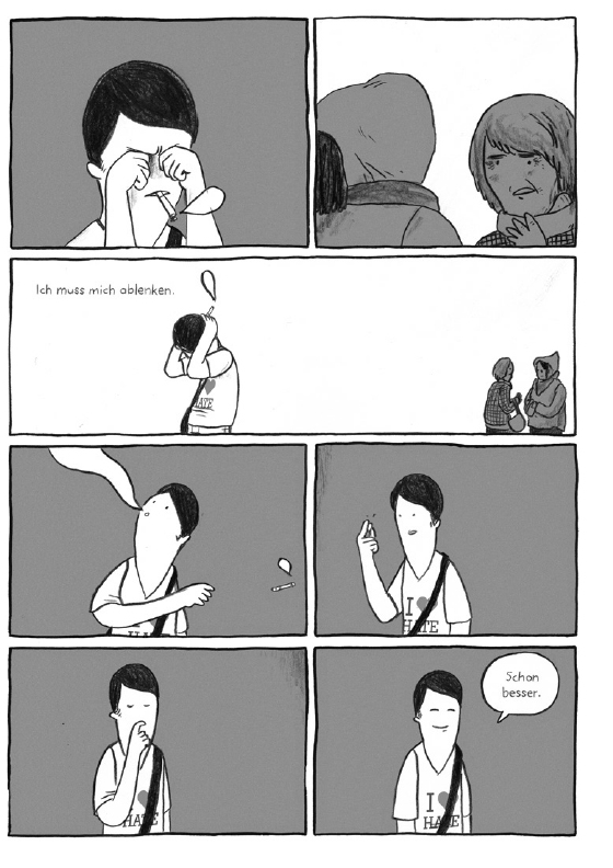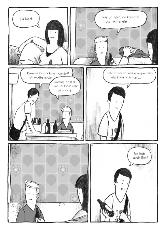 In PUNCHDRUNK beschreibt Tim Gaedke, Original-Berliner und Teil der nächsten Comicgeneration, in klaren Zeichnungen und einfachen Dialogen treffsicher und unpathetisch wie es ist, mit Anfang 20 die Schwelle zum Erwachsenwerden zu übertreten. Er begleitet seine drei Protagonisten genau so weit, bis zu der Erkenntnis, dass da etwas ist, was Veränderung braucht. Er geht dankenswerter keinen Schritt weiter und verzichtet auf die große Erkenntnis und die Moral. Im autobiografischen Sinne ist dies eine große Geste, denn Tim ist selber Anfang 20 und somit viel zu jung, um altklug und moralisch zu werden.