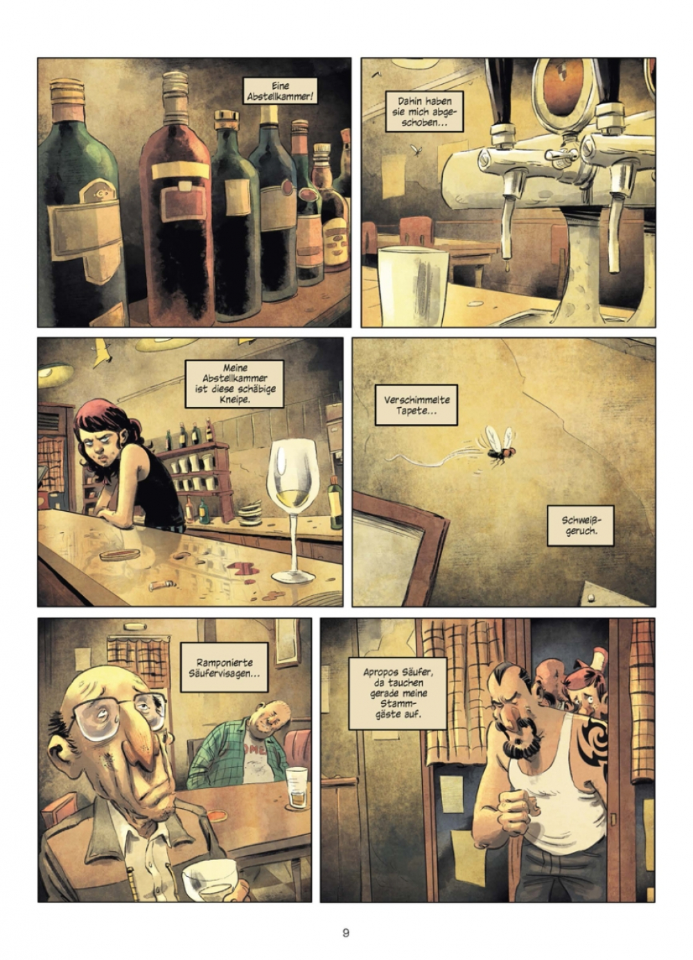 Tag für Tag steht sie allein hinter ihrem Tresen. Nur die summenden Fliegen und die ewig schwafelnden Kunden stören ihren gleichförmigen Alltag. Sie langweilt sich zu Tode, in dieser Bar, mit dieser Mission, die sie sich nicht ausgesucht hat, die sie nicht einmal versteht. Was zur Hölle machst du hier, Fanette? An diesem Ort, der so leer und tot ist wie deine Augen? Und warum ist es so wichtig, diesen verlotterten Alten im Auge zu behalten?
