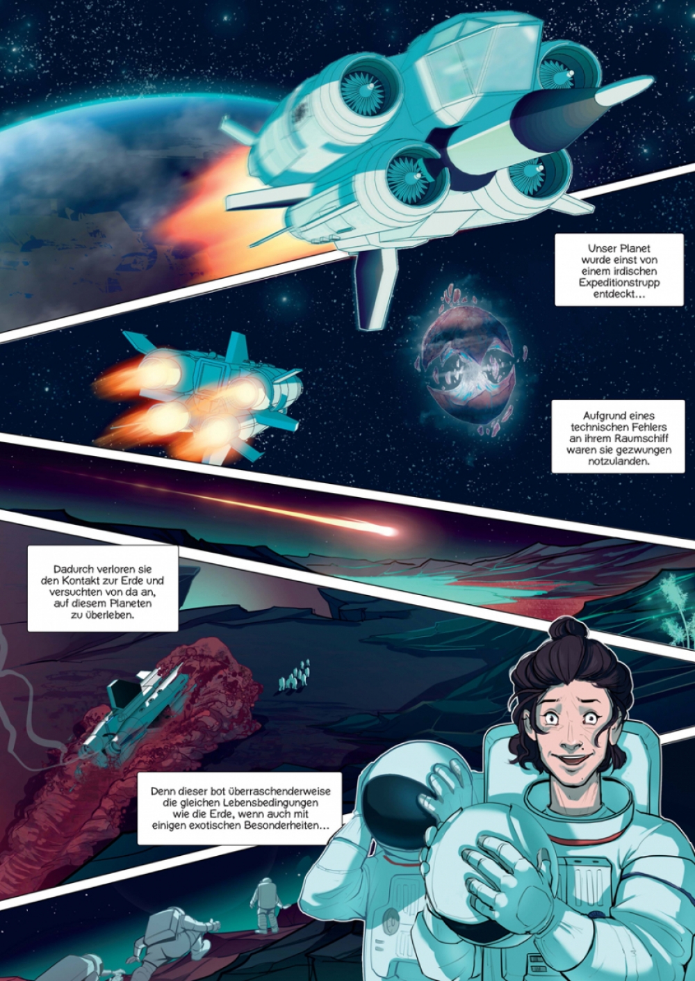 Eine Junge deutsche Comickünstlerin legt hier ihr Debüt vor. Es ist eine dystopische Science Fiction Story.
