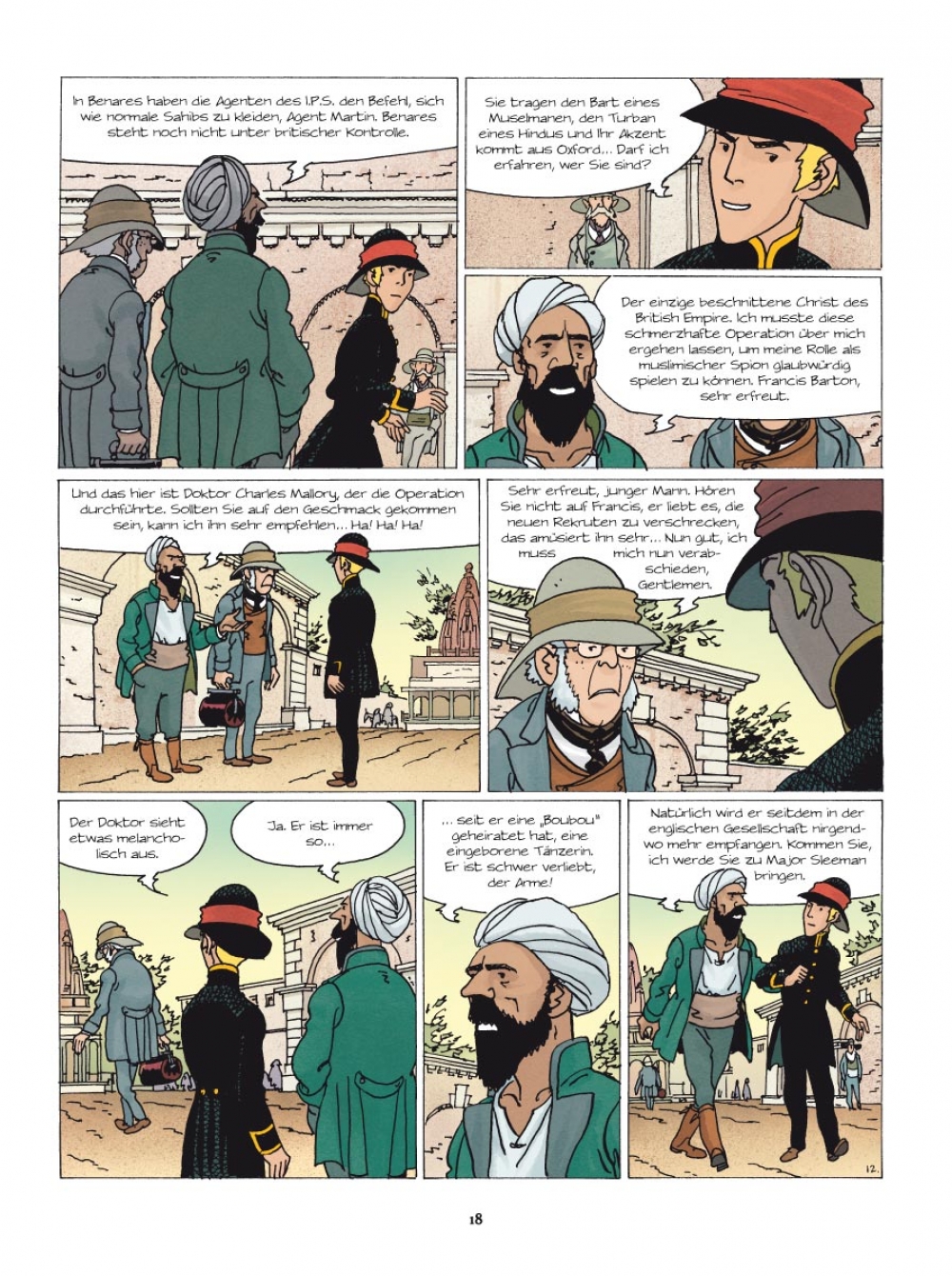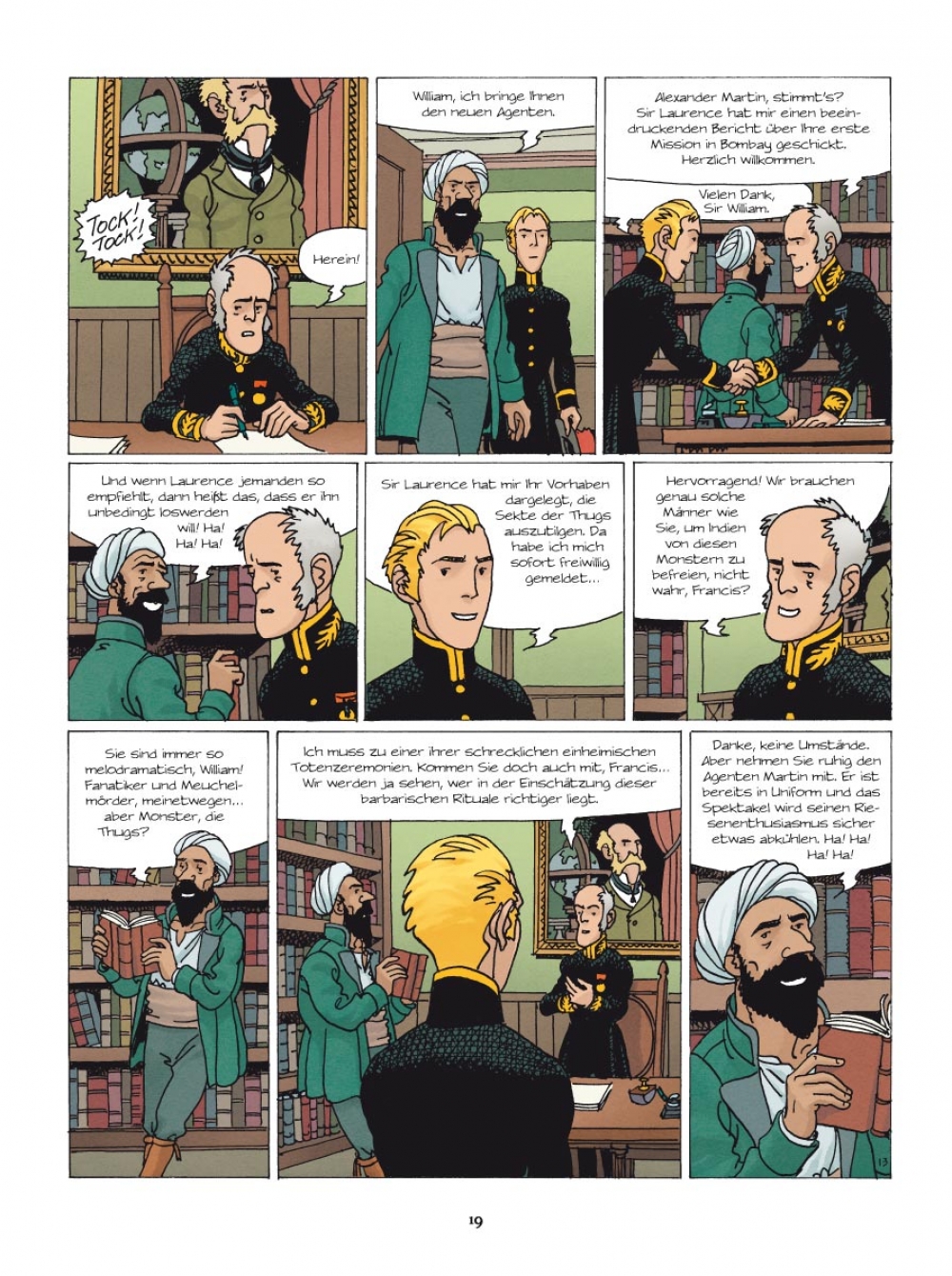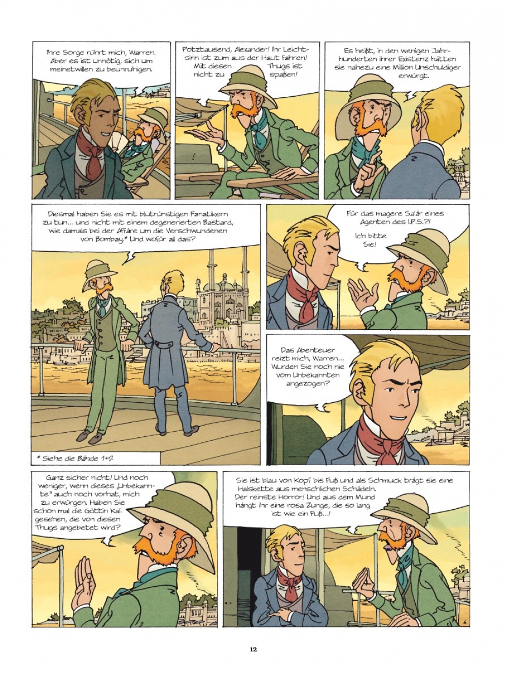 1832 Nach dem mysteriösen Verschwinden Ayeshas, der schönen indischen Sklavin, die Lord Bullock freigekauft und adoptiert hatte, bittet dieser Alexander Martin, unseren wackeren Agenten von der britischen Kolonialverwaltung, um Hilfe. Die Spur führt direkt in die Hände der Thugs, jener geheimnisvollen und berüchtigten Sekte der Würger, die nachts zuschlägt und die britischen Kolonialherren in Atem hält. Doch auch als Martin Ayesha schließlich ausfindig machen kann, ist der Fall alles andere als gelöst…