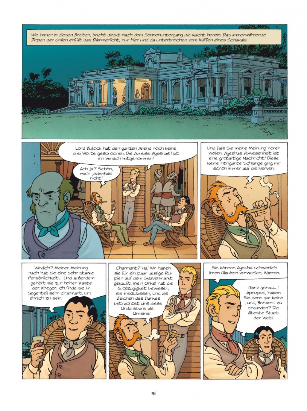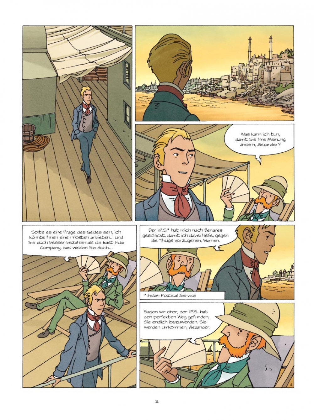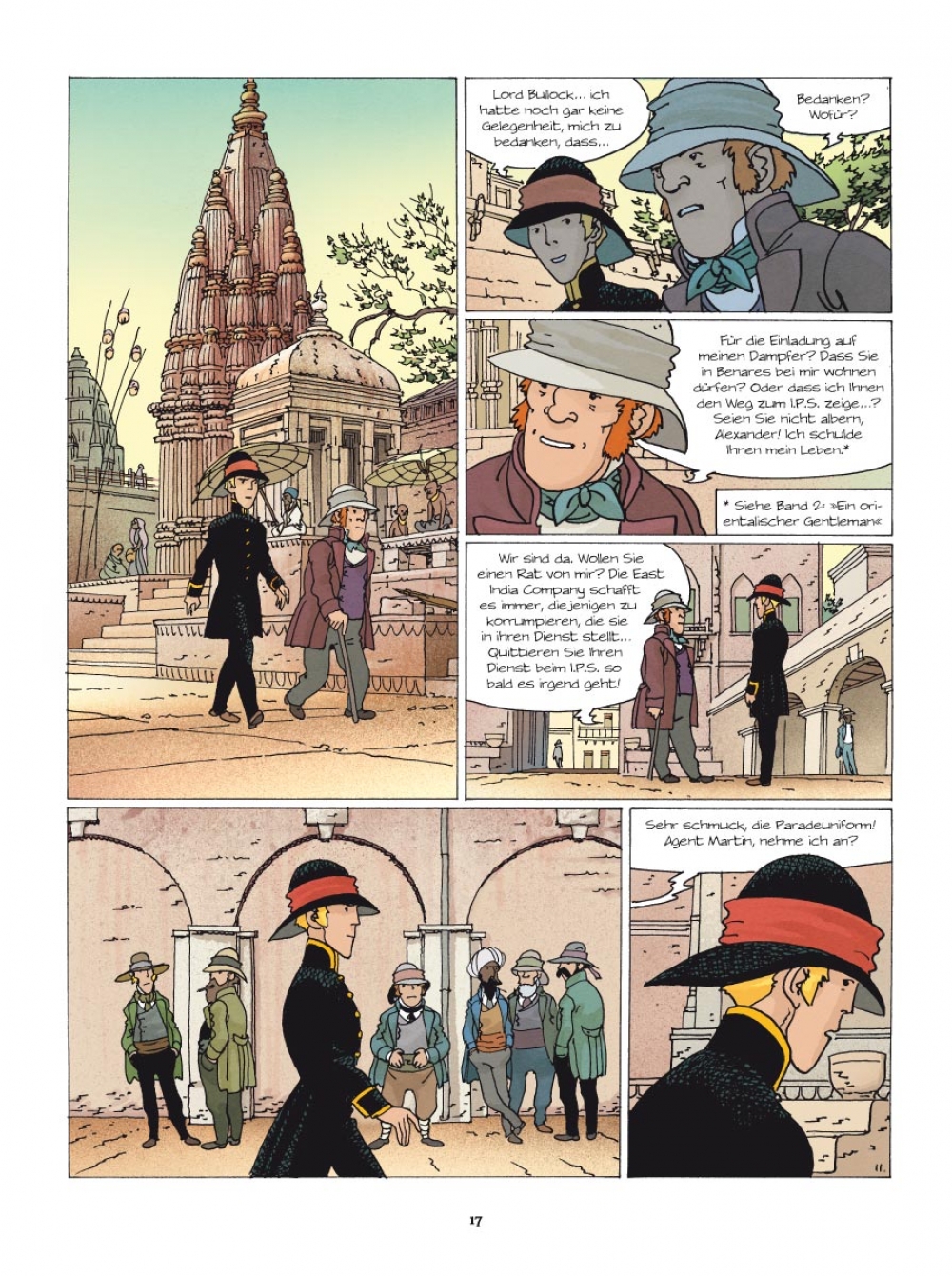 1832 Nach dem mysteriösen Verschwinden Ayeshas, der schönen indischen Sklavin, die Lord Bullock freigekauft und adoptiert hatte, bittet dieser Alexander Martin, unseren wackeren Agenten von der britischen Kolonialverwaltung, um Hilfe. Die Spur führt direkt in die Hände der Thugs, jener geheimnisvollen und berüchtigten Sekte der Würger, die nachts zuschlägt und die britischen Kolonialherren in Atem hält. Doch auch als Martin Ayesha schließlich ausfindig machen kann, ist der Fall alles andere als gelöst…