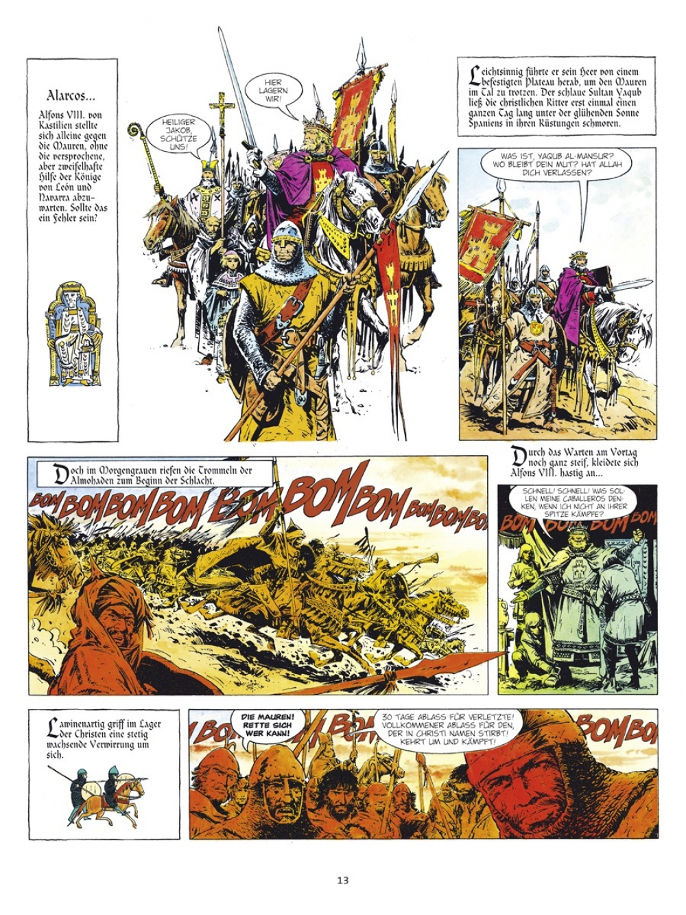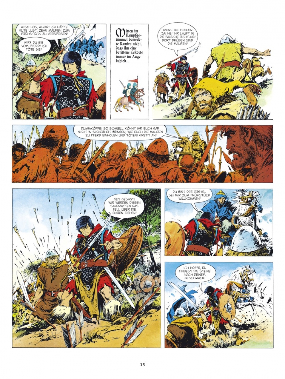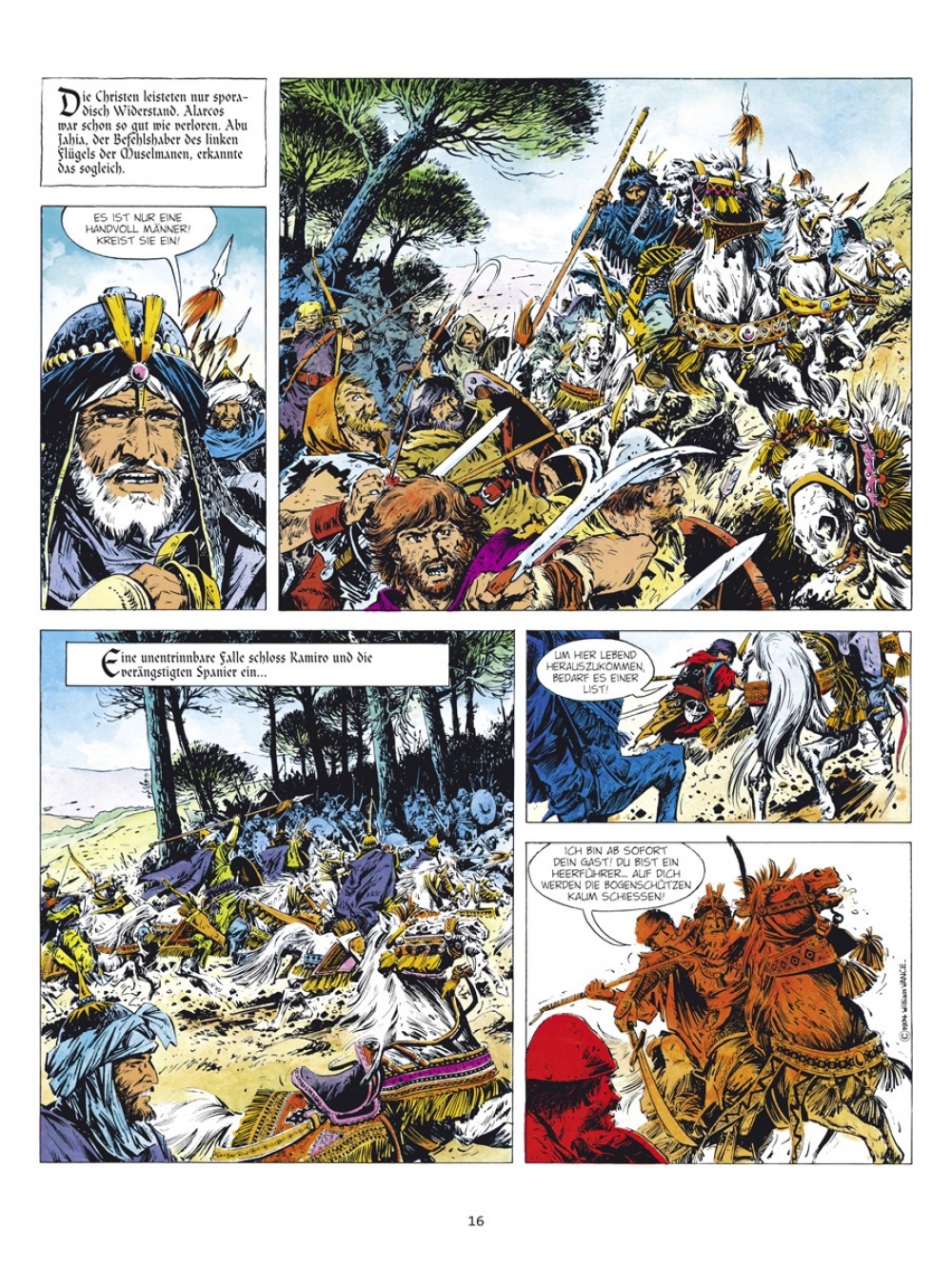 Der uneheliche Sohn des Königs von Kastilien, Ramiro, erhält von seinem Vater eine heikle Mission. Nachdem er zwei Pilger bis nach Santiago de Compostela begleitet hat, soll er einen sagenhaften Schatz, eine Erbschaft der Wisigoths, an sich bringen, der bereits mehrmals vor der Gier der maurischen Besatzer gerettet wurde. Der mutige junge Mann wird von dem Knappen Jos begleitet, den er auf lange Ritte durch das Spanien von König Alfonso VIII. mitnimmt. Das History-Meisterwerk von William Vance (Bruce J. Hawker) - endlich komplett auf Deutsch als Gesamtausgabe.