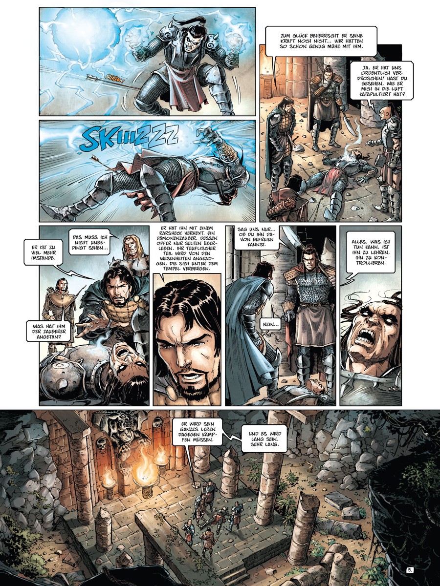 Alle, außer Gillian, der wie durch ein Wunder dem Massaker entkommt. Wer steckt hinter diesem hinterhältigen Verbrechen? Die Kirche der Wunder, eine Religion, die sich im Nachbarreich Sikhor niedergelassen hat? Eine andere Schule? Räuber? Eben dies versuchen Nadira, Gillians Schwester und gefürchtete Söldnerin, Rhomdal, der dunkle Herrscher von Sikhor, und Ornelas, Hauptmann der legendären Ritter Eisenschwinge, herauszufinden…