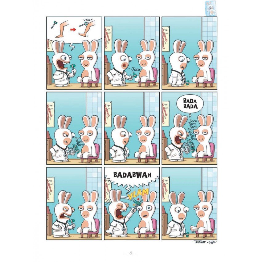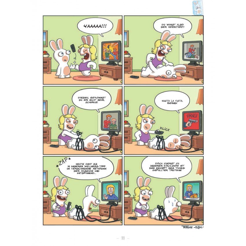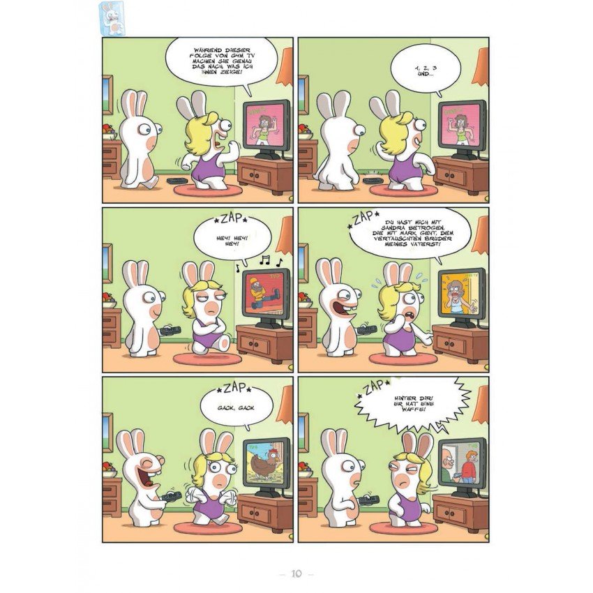 Seit ihrer Ankunft auf der Erde haben die Raving Rabbids die lästige Angewohnheit, den Alltag der Menschen aufzumischen. Sie sind bizarr und unberechenbar, irrsinnig witzig, aber nie geschmacklos, und sie haben der Welt einen Stempel (in Hasenform) aufgedrückt, indem sie aktuelle Ereignisse mit ihrem ganz eigenen Sinn für Humor auf die Schippe nehmen. Und sie haben Millionen von Fans verführt – Kinder und Erwachsene, Jungen wie Mädchen. Nachdem sie Videospiele, Game-Foren, das Internet und alle möglichen Gebrauchsgegenstände erobert haben, vergreifen sie sich nun auch an der Welt der Comics. Und sie wollen sämtliche Regeln der neunten Kunst brechen! Ihre neue Spielwiese bringt sie unserem Alltag noch näher. Sie beschäftigen sich nur zu gerne mit all unseren kleinen Eigenheiten, unseren Lese- und Fernsehgewohnheiten oder unseren ach so wichtigen Events… Es werden keine Mühen gescheut, um die Hasen zu amüsieren – und ihre Fans!