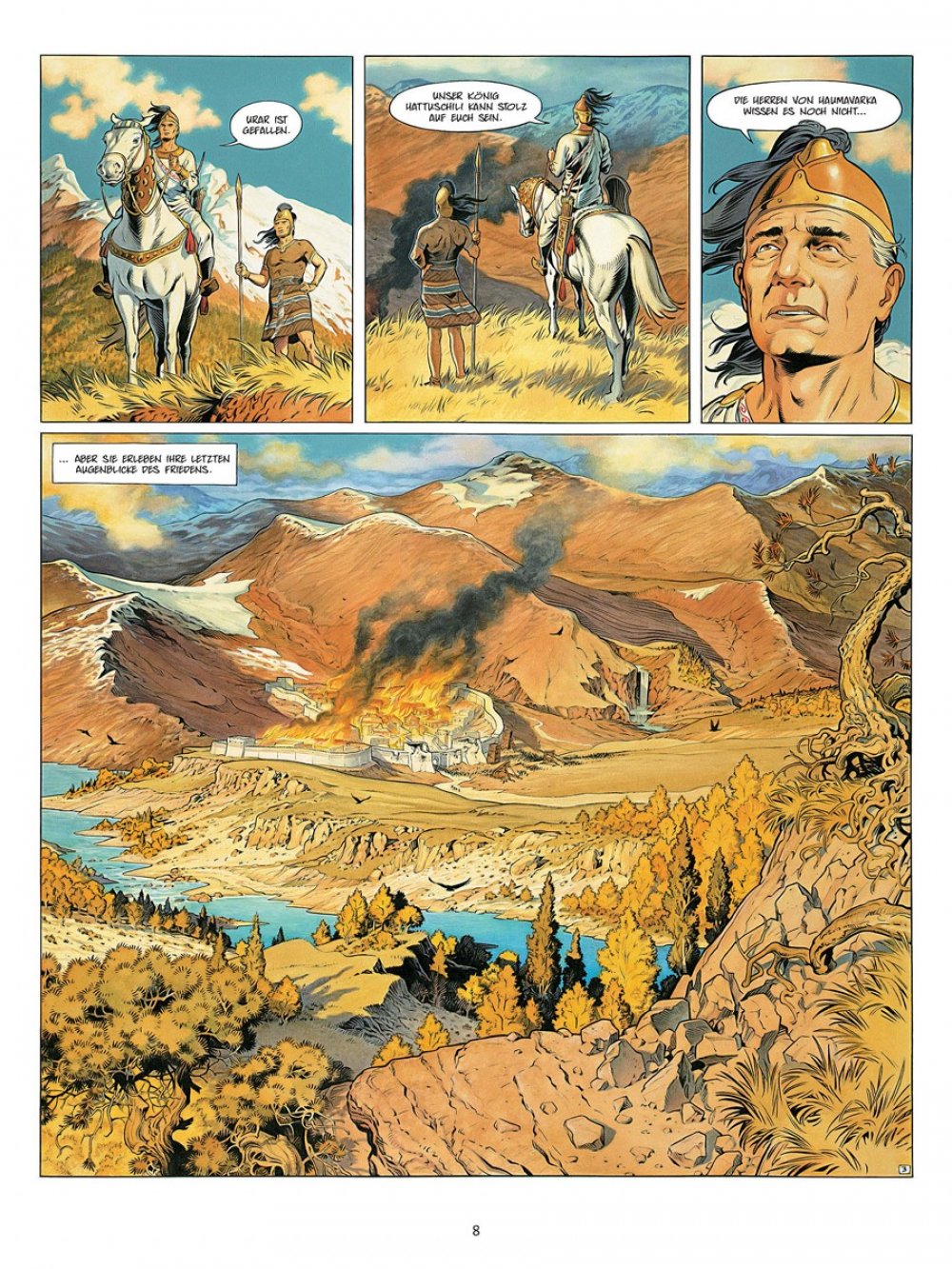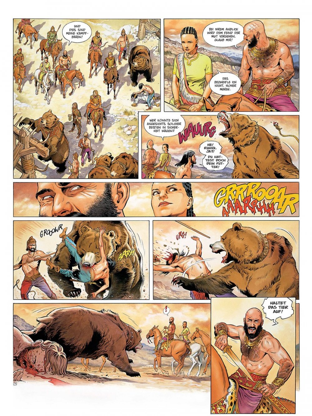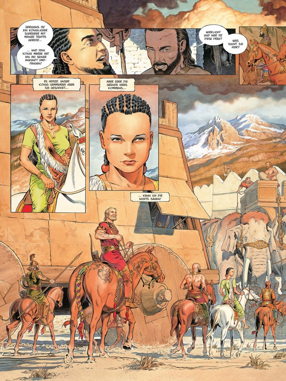 Vor langer Zeit lieferten sich zwei Stämme Kleinasiens, die Hethiter und die Skythen, einen unerbittlichen Krieg. Um dem hethitischen Militär zu trotzen, beenden die Herrscher der drei skythischen Reiche ihre Feindschaft und vereinen ihre Armeen. Hamurapi, König von Babylonien und Verbündeter der Skythen, entsendet seine Schreiberin Thusia, um über die Schlacht zu berichten, damit die denkwürdige Tat in der großen Bibliothek von Babylon nachgelesen werden kann. Darüber hinaus wird der Heereszug von fünf alten Hexern begleitet, den letzten Vertretern einer versunkenen Kultur. Tausende Krieger machen sich schließlich auf den Weg, mit rollenden Palästen, Elefanten, dressierten Bären und geheimnisvollen und furchterregenden Kreaturen, die in ausbruchssicheren Käfigen gehalten werden. Doch die Orakel verheißen den Kämpfern nichts Gutes…