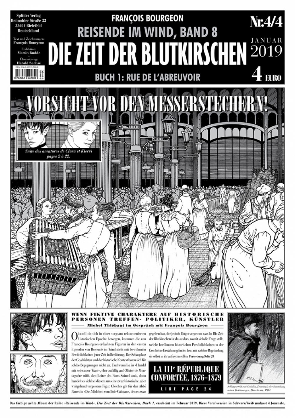 Um die langerwartete Fortsetzung gebührend zu zelebrieren – acht Jahre hat es gedauert – veröffentlicht Splitter ab November den gesamten Band im Zeitungsformat vorab. Durch das übergroße DIN A3-Format erlebt ihr die getuschten Zeichnungen von Meister Bourgeon erstmals fast in Originalgröße! Neben 16 Seiten aus Band 8 der Comic-Reihe umfasst jedes Journal 4 Seiten exklusives Bonusmaterial, das nicht im Album vorkommt.