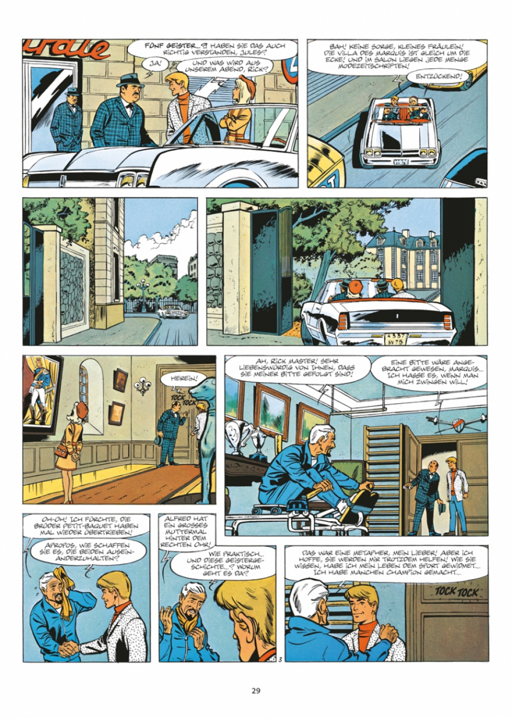 Er ist ein Phänomen – in gut fünfzig Jahren hat Rick Master über siebzig knifflige Kriminalfälle gelöst und dazu noch eine ganze Reihe von Kurzauftritten absolviert. Eine bemerkenswerte Quote für einen Reporter und Amateurdetektiv, auch wenn er dabei stets auf die Unterstützung des erfahrenen Kommissars Bourdon bauen konnte (und umgekehrt). Oft hatte er es bei seinen Ermittlungen mit scheinbar unerklärlichen oder übernatürlichen Vorkommnissen zu tun – mit unerschütterlicher Beharrlichkeit vermochte er sie aber immer wieder als Verbrechen zu entlarven.