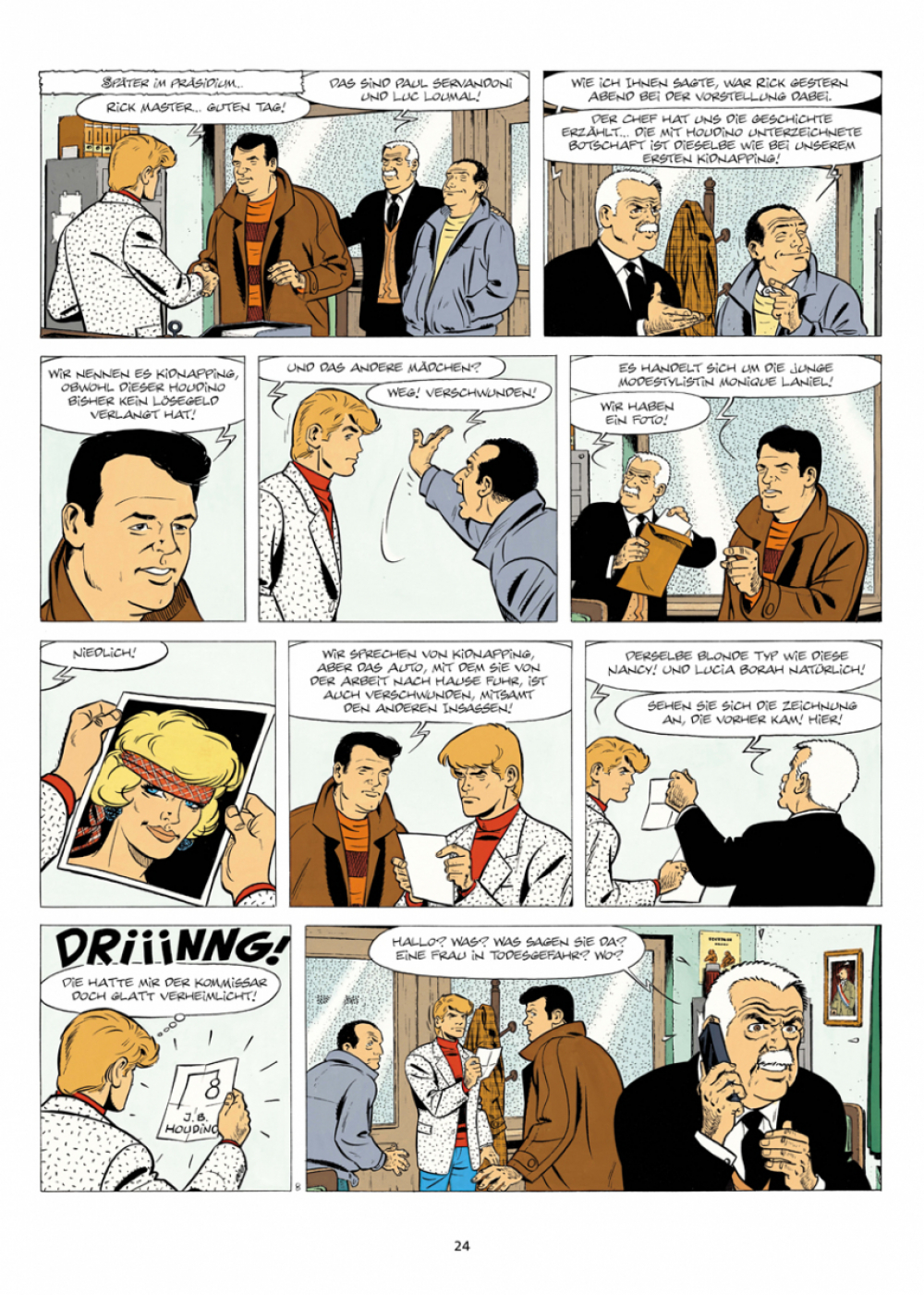 Er ist ein Phänomen – in gut fünfzig Jahren hat Rick Master über siebzig knifflige Kriminalfälle gelöst und dazu noch eine ganze Reihe von Kurzauftritten absolviert. Eine bemerkenswerte Quote für einen Reporter und Amateurdetektiv, auch wenn er dabei stets auf die Unterstützung des erfahrenen Kommissars Bourdon bauen konnte (und umgekehrt). Oft hatte er es bei seinen Ermittlungen mit scheinbar unerklärlichen oder übernatürlichen Vorkommnissen zu tun – mit unerschütterlicher Beharrlichkeit vermochte er sie aber immer wieder als Verbrechen zu entlarven. Rick Masters gesammelte Fälle erscheinen in einer wunderschönen Gesamtausgabe komplett bei Splitter.