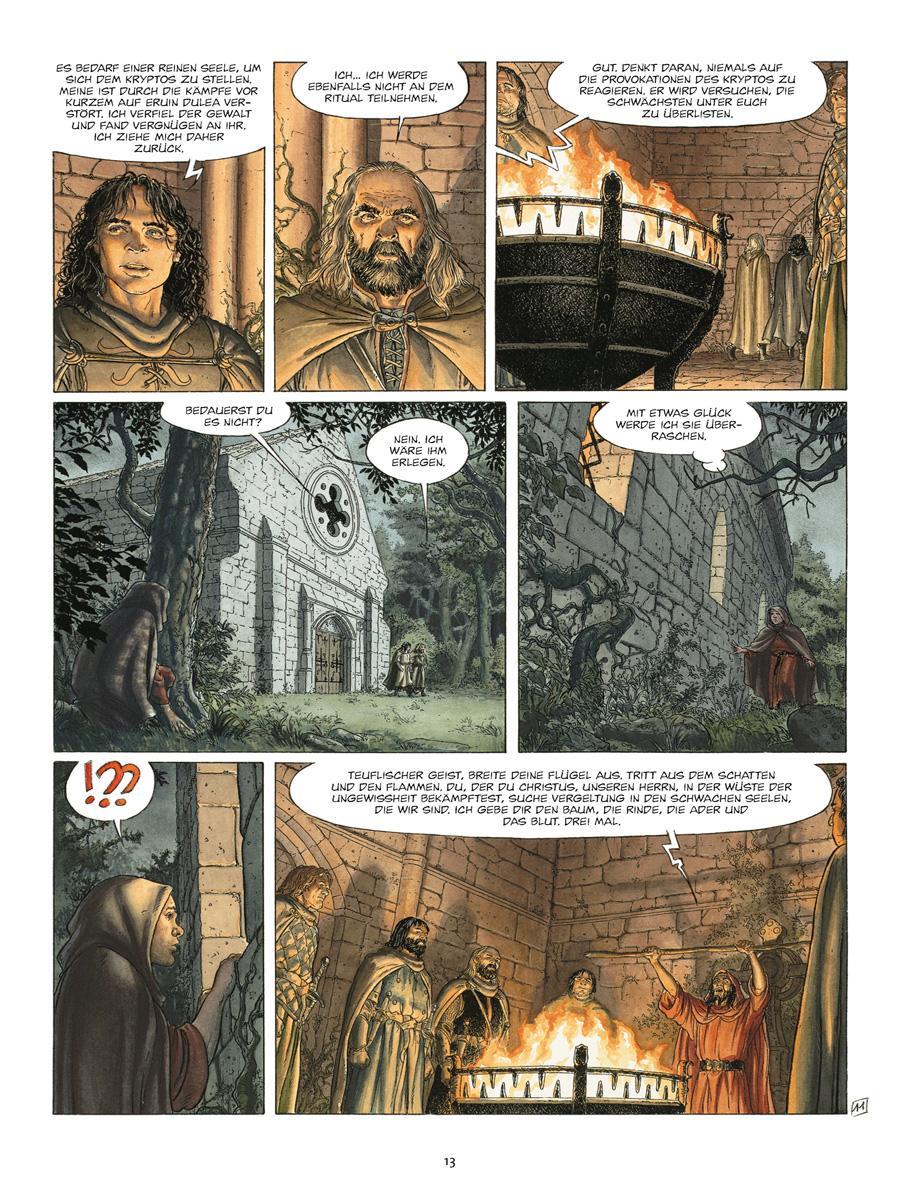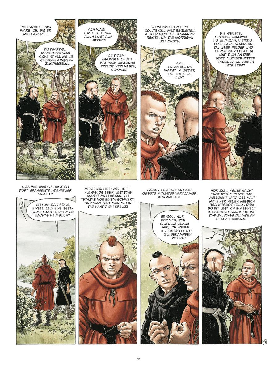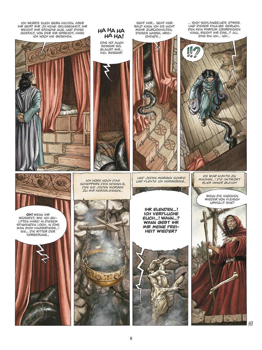 Das Gebiet von Glen Sarrick wird von einer Morigane heimgesucht, einer Hexe reinen Blutes, der letzten ihrer Zunft. Weder Dorfleute noch Priester sind vor ihrer Mordgier sicher, ja selbst die »Ritter der Gnade« fallen ihrer Heimtücke zum Opfer. Höchste Zeit für Ritter Sill Valt und seine Truppe, in Richtung der kleinen Insel im Nordmeer zu segeln und deren Bewohner von der teuflischen Kreatur zu befreien. Doch die Aufgabe gestaltet sich schwieriger als gedacht, denn die Hexe ist listig und ihre Maske nahezu perfekt.