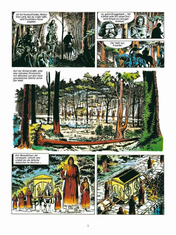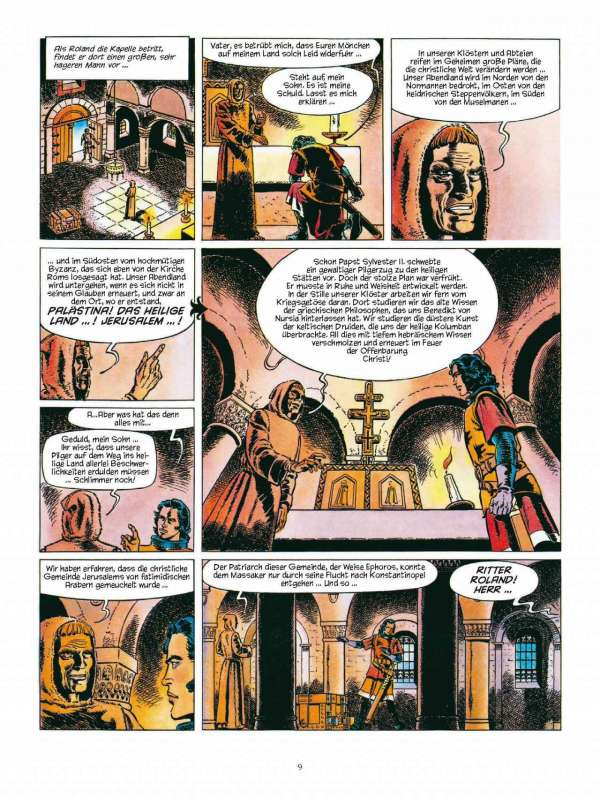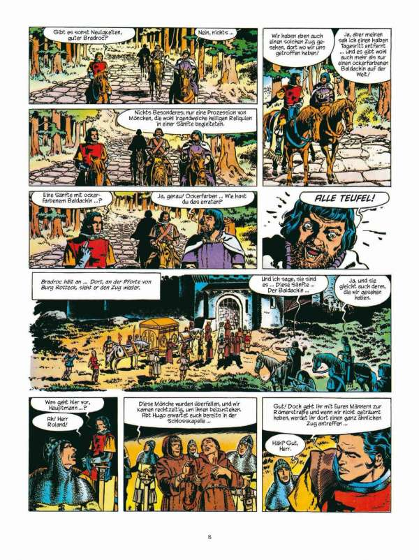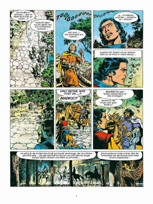 Die Ehre und Liebe eines Ritters 1975 feierte der Comic-Klassiker ROLAND, RITTER UNGESTÜM aus der Feder des belgischen Comiczeichners François Craenhals´ seine Erstveröffentlichung. Die beliebte frankobelgische Comic-Jugendserie im realistischen Stil wird nun von uns nach großem Erfolg der ersten Cross Cult-Ausgabe nochmals in neuer Gewandung verlegt: ein moderneres Coverdesign und unsere gewohnte Papierqualität treffen auf 144 Seiten puren Comicgenuss! Mut, Intelligenz und ein gutes Herz verhelfen dem jungen, ungestümen Knappen Roland zu treuen Freunden und einem Platz am Hofe von König Artus. Band drei der Gesamtausgabe enthält die Abenteuer DER SCHATZ DER WEISEN, DER ZAUBER DER WÜSTE und DER HÜNE VON WORMS – ergänzt um exklusive redaktionelle Inhalte.