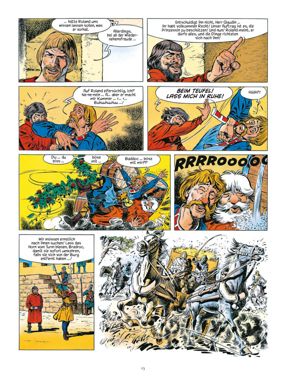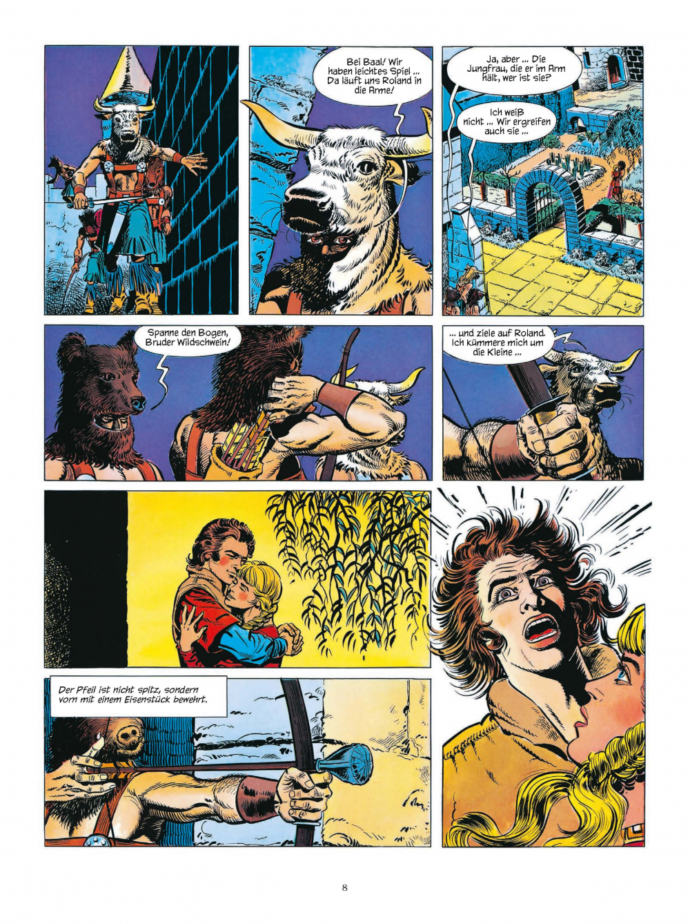 Ein rebellisches Ritterherz Mit seiner ungezügelten und forschen Art ist der Jungritter Roland seinem Lehnsherrn König Artus schon oft ein Dorn im Auge gewesen – nicht zuletzt, weil er allen Standesdünkeln zum Trotz an seiner Liebe zur Königstochter Gwendoline festhält. Nun droht das brüchige Band zwischen Herrscher und Vasall für immer zu reißen. Während Roland nach den Ereignissen aus DER HÜNE VON WORMS mit seiner Geliebten auf sein Lehen Rotteck zurückkehrt und ein großes Fest ausrichten lässt, plant Artus eine Strafexpedition gegen seinen ungehorsamen Ritter. Unterdessen werden Roland und seine Angebetete von dem grauenhaft entstellten Hünen von Worms aus seiner Burg entführt. Auch die neue Edition enthält wie der ursprüngliche Band DIE GEFANGENE PRINZESSIN, DER AUFSTAND DER VASALLEN und RITER DER APOKALYPSE.