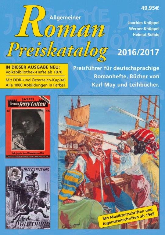 Was ist das Heft oder Buch XY wert? Wie viele Ausgaben hatte diese Serie? Von wann bis wann erschien jene Reihe? Der Roman-Preiskatalog für deutschsprachige Romanhefte, Leihbücher, Bücher von Karl May, Musik- und Jugendzeitschriften, beantwortet diese und viele weitere Fragen. Ob Hefte der 30er oder der 50er Jahre – wie Billy Jenkins und Rolf Torring – oder aktuelle wie Perry Rhodan, Jerry Cotton und Maddrax: Für alle Veröffentlichungen sind die wichtigsten Eckdaten zur Ausstattung, der Erscheinungsumfang und -zeitraum sowie die Sammlerpreise aufgeführt.