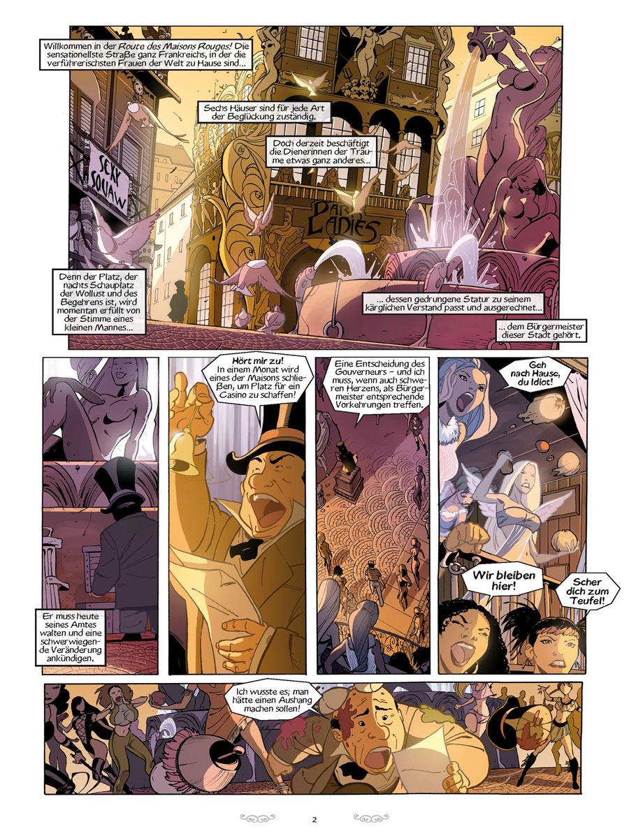 Die Route der Maisons Rouges ist eine wahre Sündenmeile. Kein Bedürfnis, das von den zahlreichen Etablissements nicht erfüllt werden könnte – über Cybersex, lüsterne Wes-ternwelten bis hin zu S/M-Studios ist hier jede Spielart der Lust vertreten. Aber die Beschaulichkeit dieses frivolen Ortes wird einer harten Prüfung unterzogen: Bald soll das am wenigsten lukrative Bordell schließen. Ein harter Konkurrenzkampf wird entfacht, den die Todfeinde der Prostituierten, der machtgierige Gouverneur und sein autoritätshöriger Bürgermeister, mit großem Vergnügen beobachten. Als schließlich McDallas, ein enger Vertrauter des Bürgermeisters, eine der Prostituierten vergewaltigt, kommt es zu einem erbitterten Rachefeldzug…