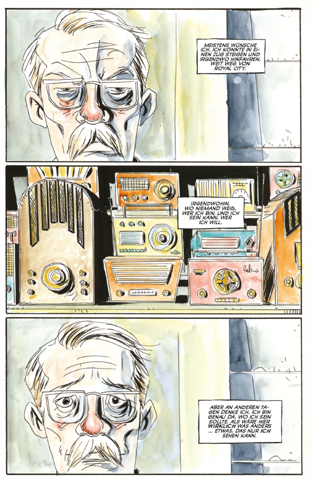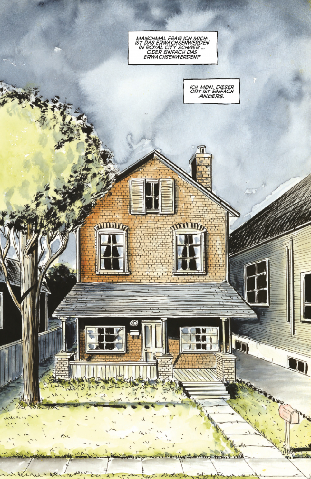 Royal City ist ein umfassender, ambitionierter Comic, der das Leben, die Liebe und den Verlust einer gebeutelten Familie und einer schwindenden Stadt über drei Jahrzehnte nachzeichnet. Diese Gesamtausgabe vereint die komplette Serie und bietet Einblicke hinter die Kulissen, die den Leser tiefer in Lemires Originalgeschichte und seinen kreativen Schöpfungsprozess einführen.