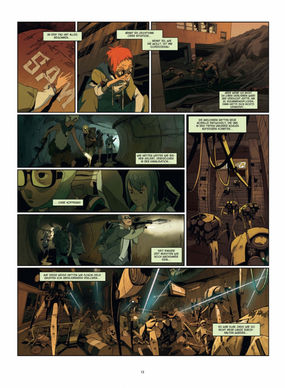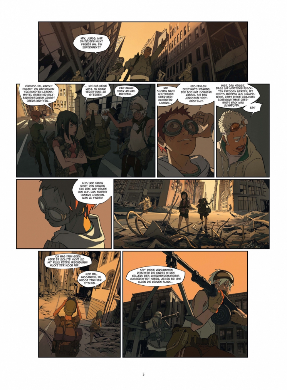 Unsere Welt, in einer möglichen Zukunft... Eine Gruppe Teenager, auf sich allein gestellt, ist gezwungen, sich in einer verwüsteten, namenlosen Mega-City durchzuschlagen. Ansonsten lebt dort, wächst dort nichts mehr, außer ein paar Flechten oder Ratten. Und das ist noch nicht einmal das Schlimmste: Roboter machen Tag und Nacht Jagd auf alles, was sich womöglich doch noch an menschlichem Leben irgendwo in den Ruinen verbirgt. Doch eines Tages stößt ein Spähtrupp auf einen Roboter, der sich auffällig anders verhält. Nicht nur, dass er die Gruppe nicht angreift, er scheint sogar eher die Nähe von Menschen zu suchen.