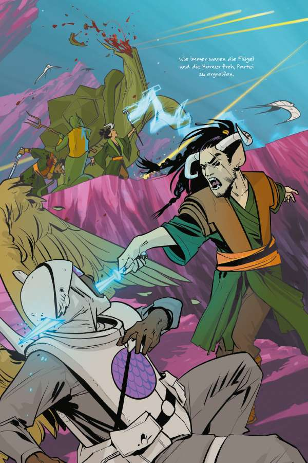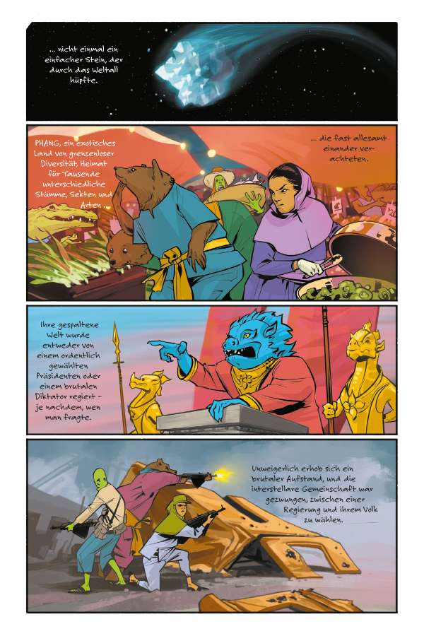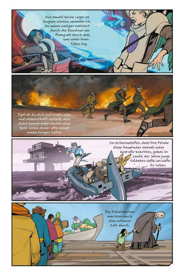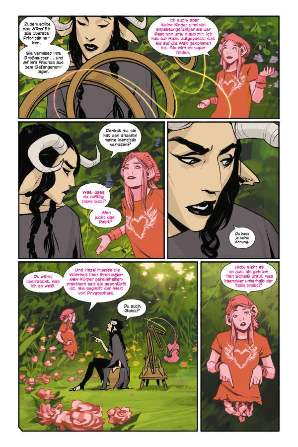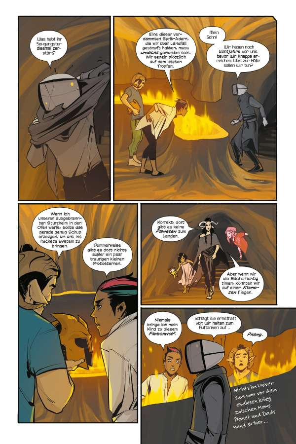 Endlich ist die immer grösser werdende Familie wiedervereint! Doch Hazel muss sich zu einem vom Krieg zerrissenen Kometen aufmachen. Um diesen wird schon seit Jahrzehnten gekämpft. Dieser Band gilt als abgeschlossener Event in der Geschichte von SAGA.