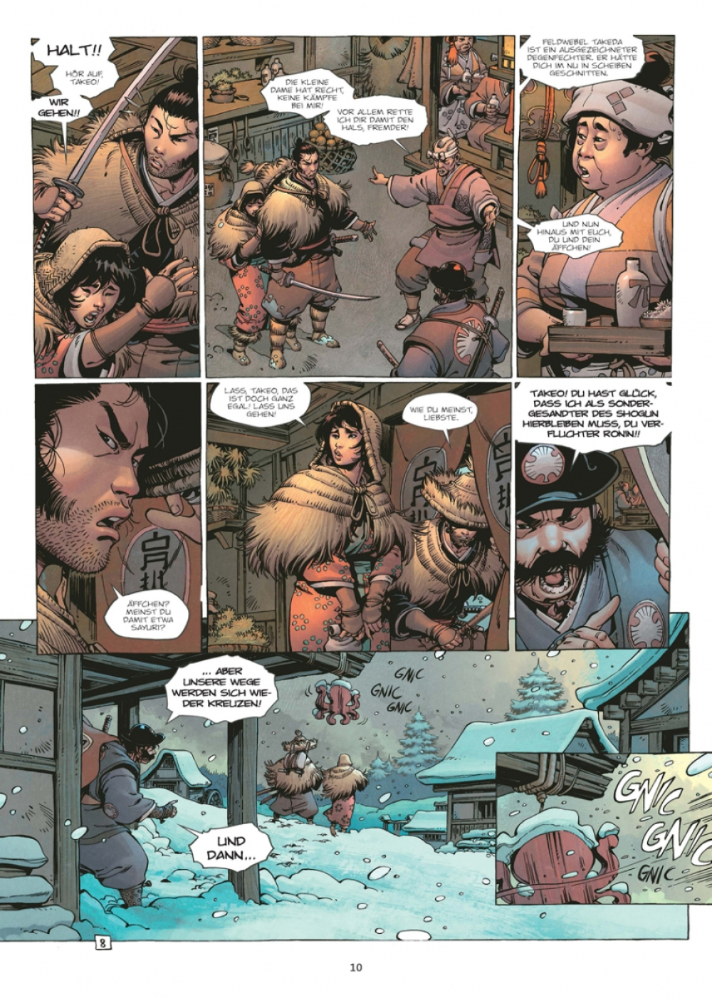 In der Hoffnung, den Kaiser zu treffen und ihm seine Treue zu schwören, durchreist Takeo in Begleitung von Sayuri ganz Japan. Aber sie werden ihr Ziel nie erreichen! Denn ein dramatischer Schneesturm zwingt sie, in einem winzigen, fast verlassenen Dorf Zuflucht zu suchen. Eine Falle?